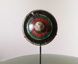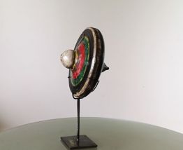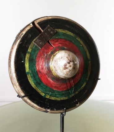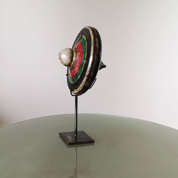 Cette toupie ancienne en bois, originaire de Java en Indonésie, raconte une histoire fascinante à travers sa patine d'origine qui témoigne du passage du temps et de son utilisation passée. Les réparations délicates en métal ajoutent une dimension intrigante, révélant l'artisanat soigné utilisé pour restaurer cette pièce précieuse. En tant qu'objet de décoration, elle peut devenir le point central d'une étagère ethnique, apportant une touche d'histoire et de culture à n'importe quel intérieur. Placée au milieu d'autres objets artisanaux du monde entier, elle crée un environnement visuel unique, mélangeant l'ancien et le contemporain, et invitant à explorer l'histoire riche et diversifiée de l'art et de l'artisanat javanais.