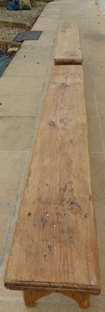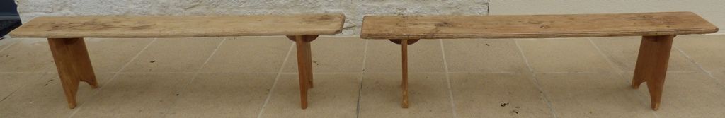 *M20230101/ Deux bancs dans leurs patines en bois massif Totalement restaurés – Dimension : longueur : 170 cm – profondeur : 23.50 cm – Epaisseur assise : 3 cm – hauteur : 43 cm