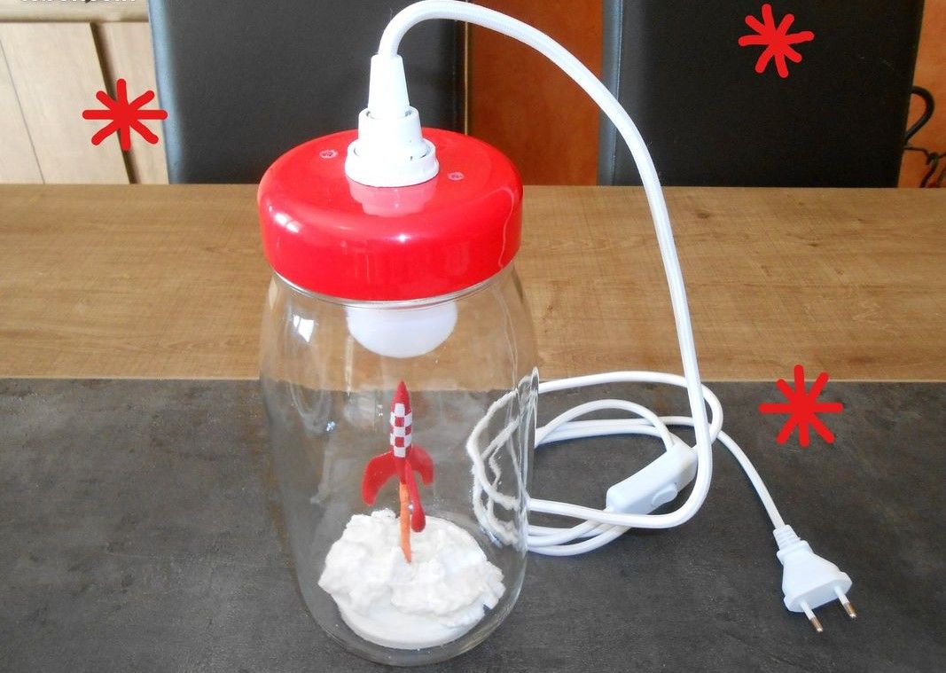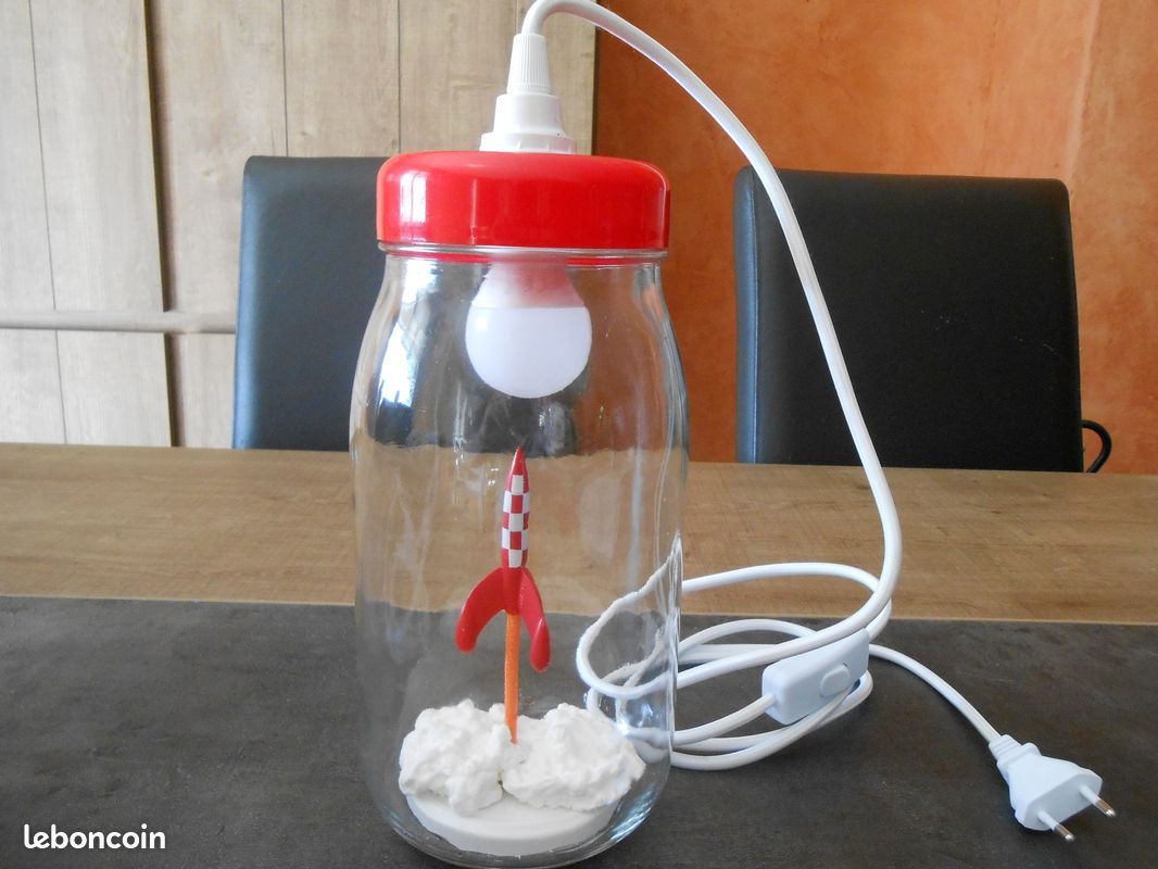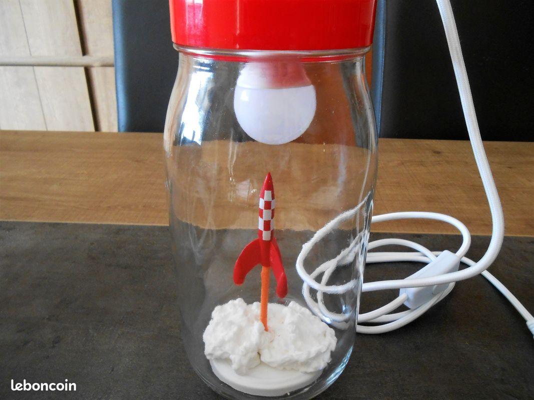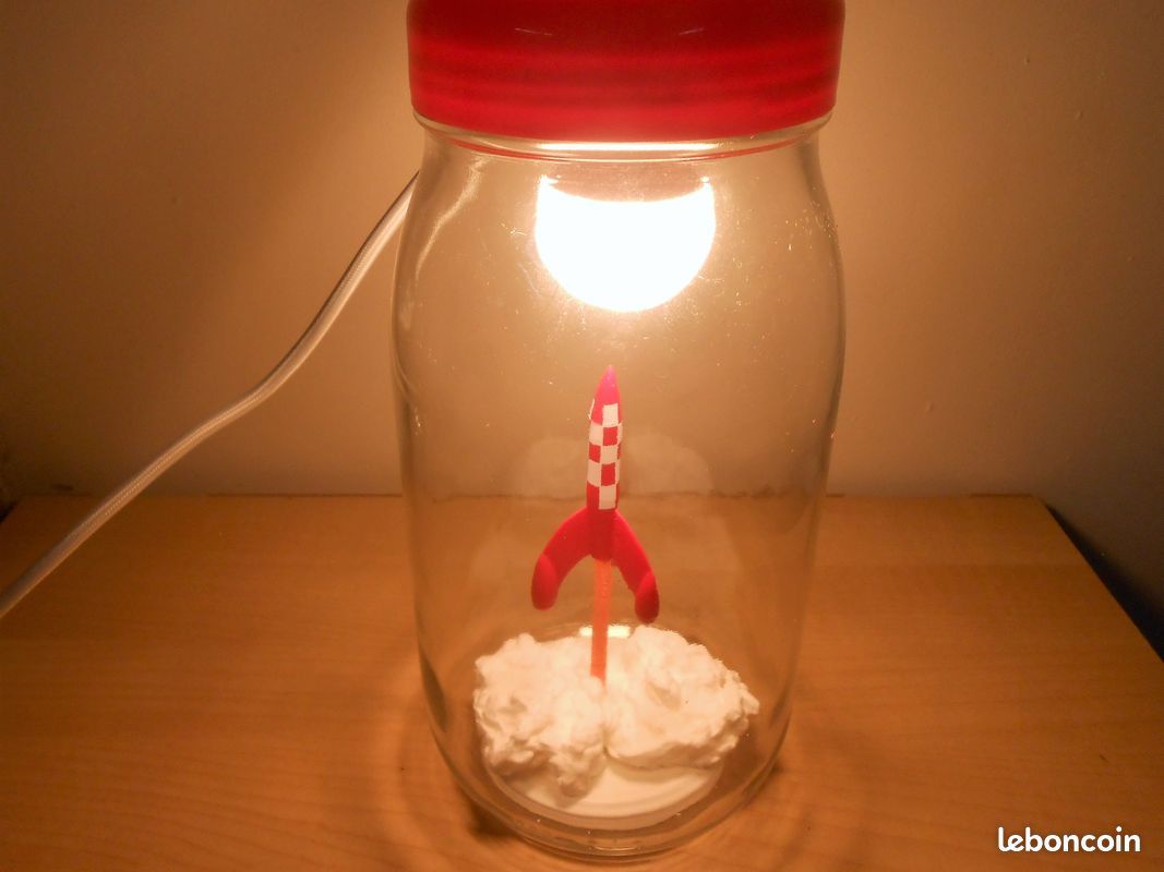 Très belle lampe décorative de collection véritable Le Parfait à décor Fusée Tintin au décollage objectif Lune. Création originale - Idéal déco ou idée cadeau !