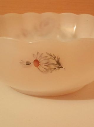Saladier dentelé Arcopal, en très bon état, motifs pâquerettes.