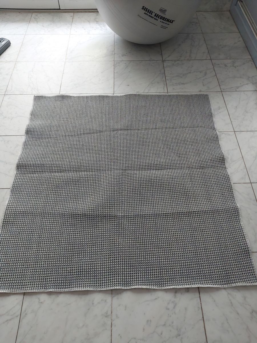 Beau tapis composé d'une base en coton antidérapant, de plumes de polyester en microfibre douces et brillantes sur le dessus
