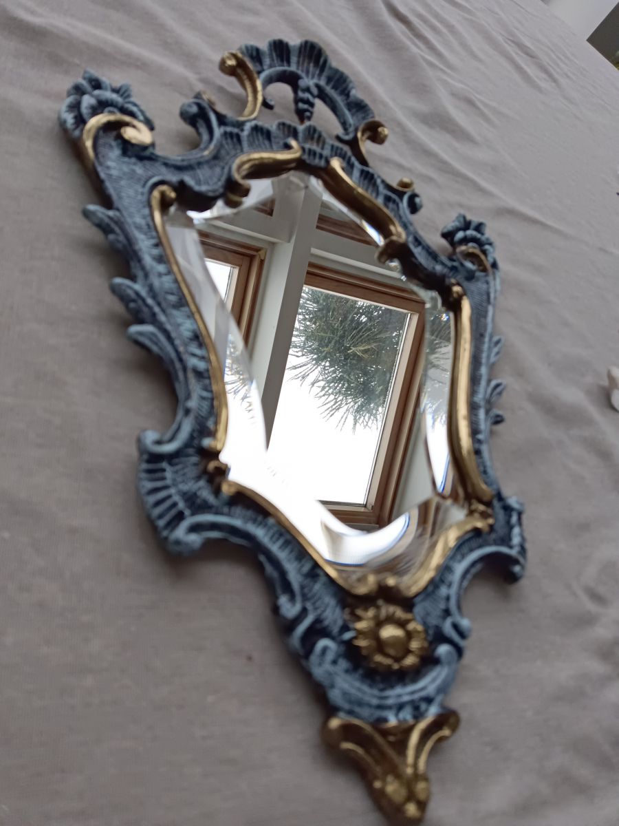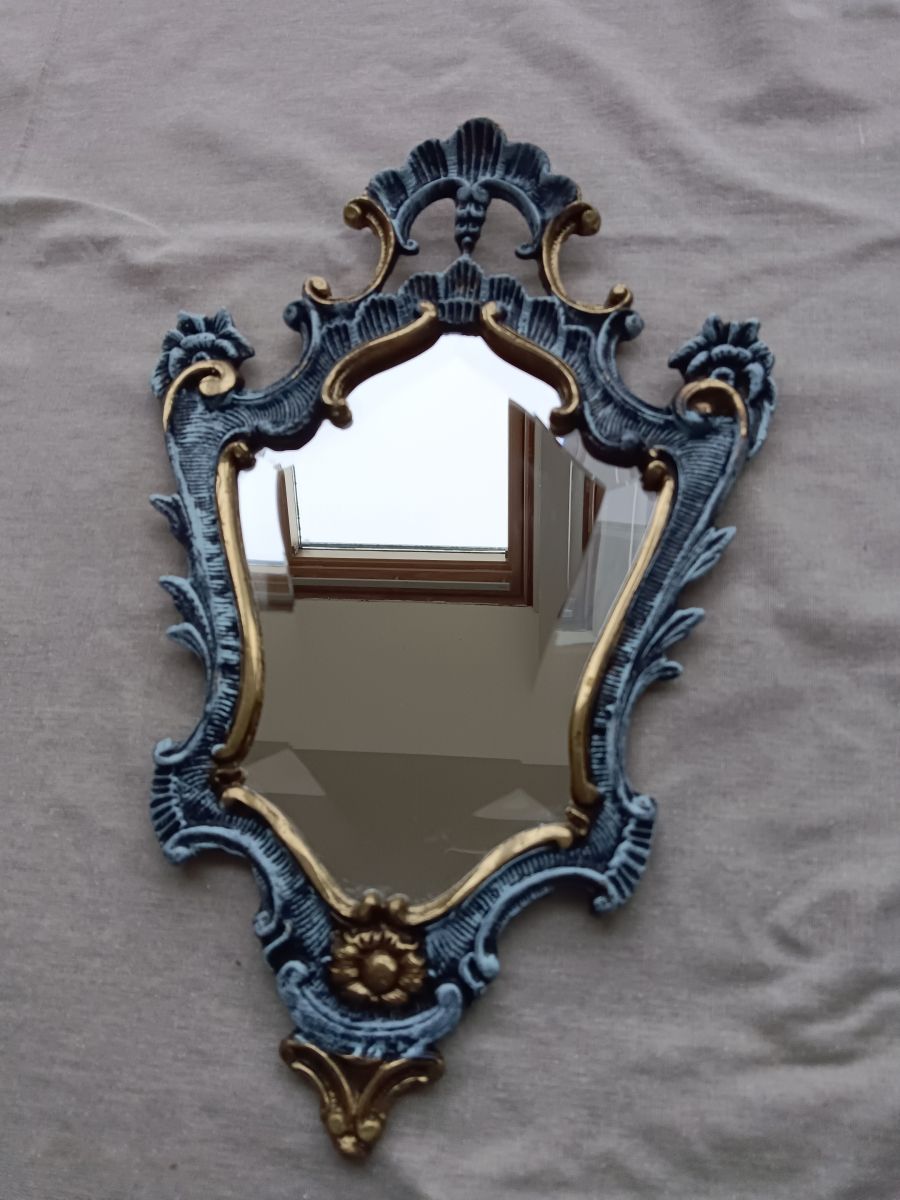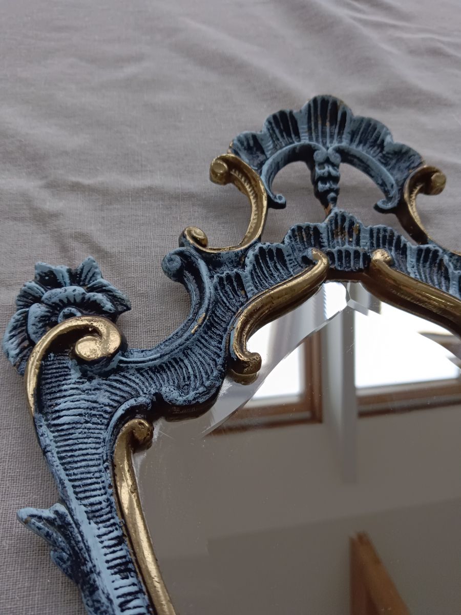 Joli miroir en bronze patiné de bleu et de noir