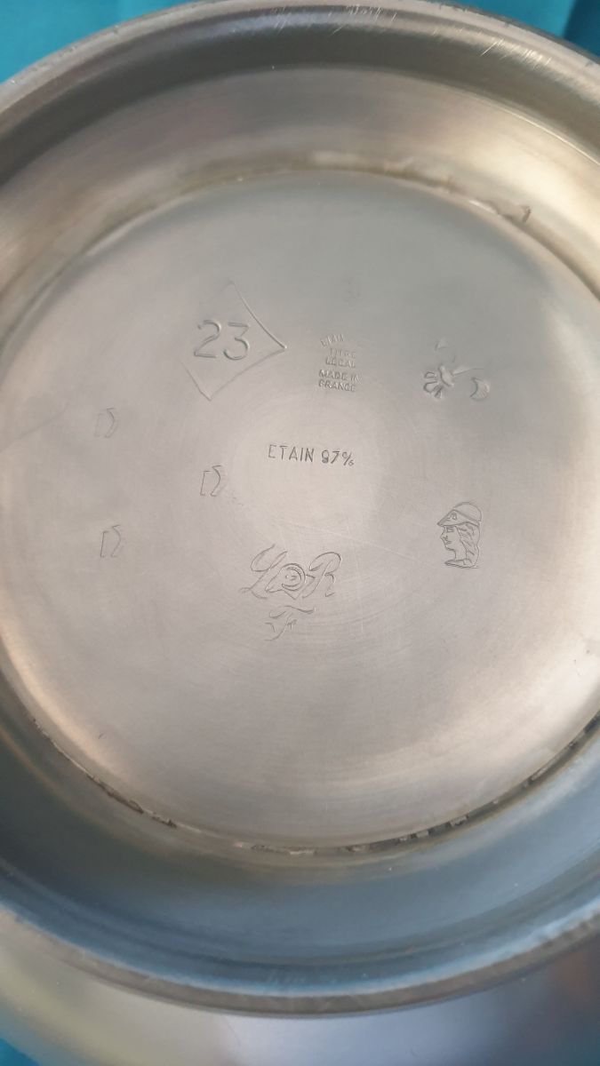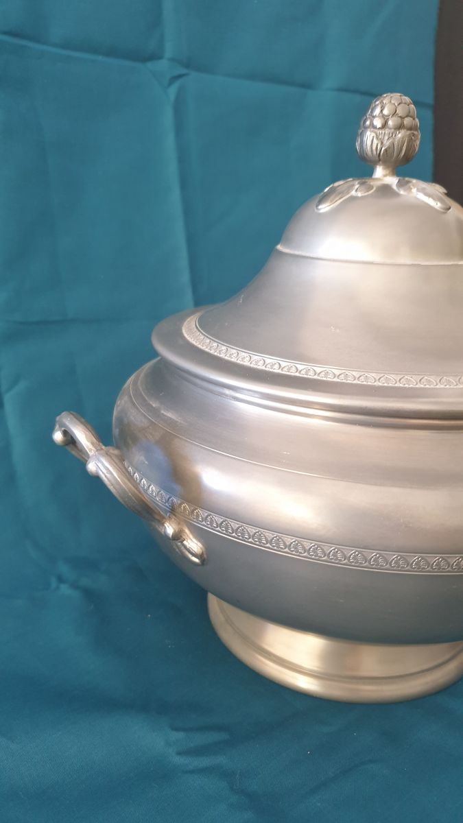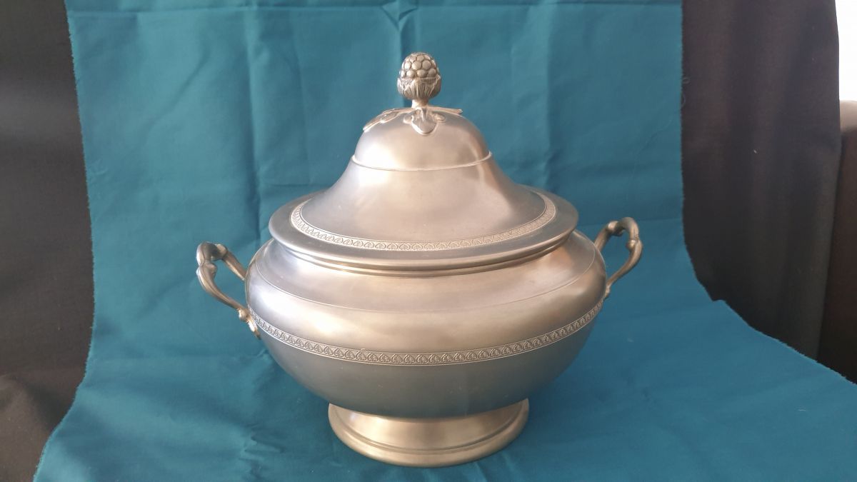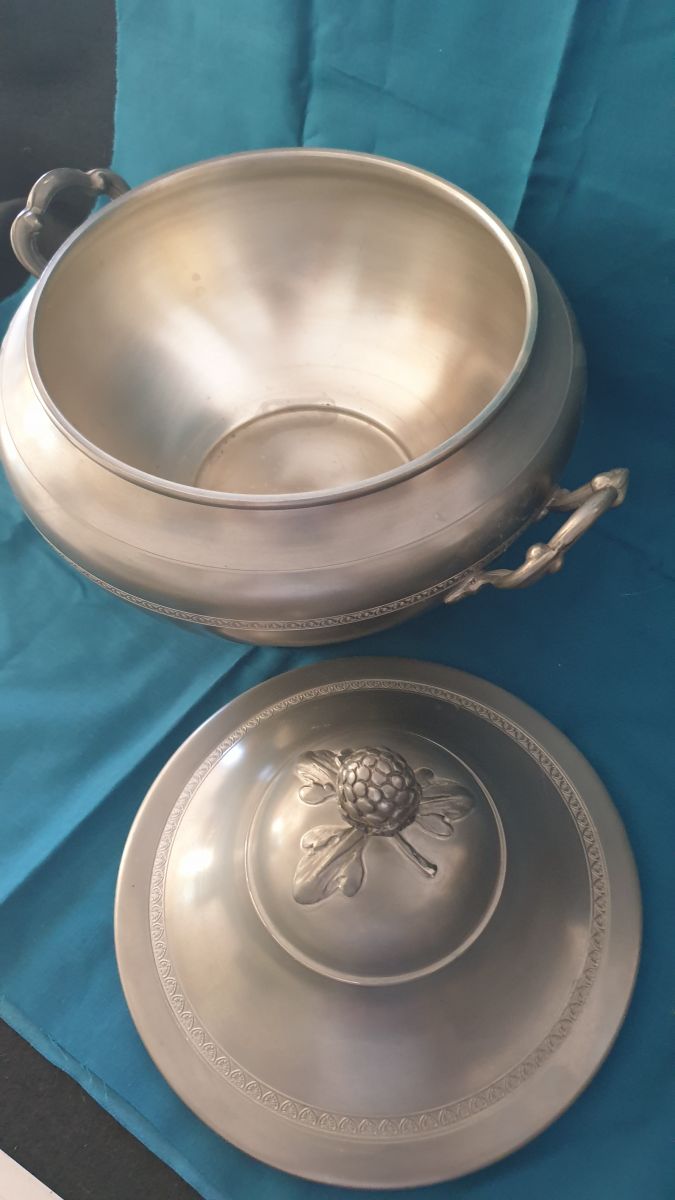 Soupière en étain . Estampille Etain du Lys fait main en édition limitée N°23 ,
