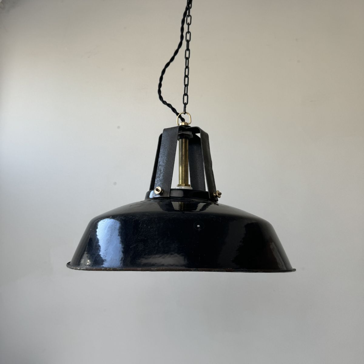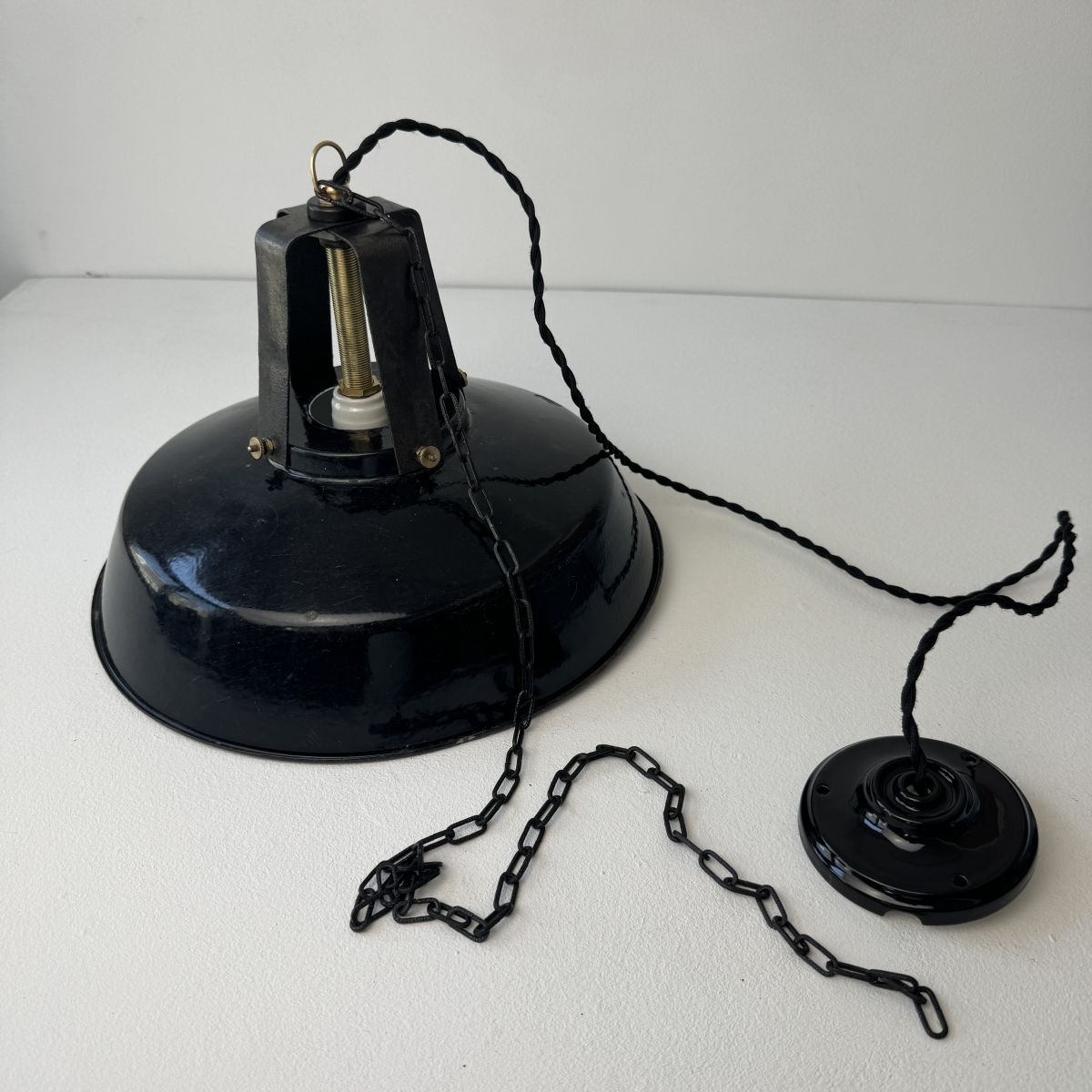 ANCIENNE SUSPENSION EMAILLEE INDUSTRIELLE 35,5 CM