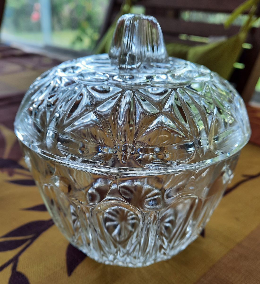 Charmante petite bonbonnière des années 50 dans un état impeccable. Verre de Reims.