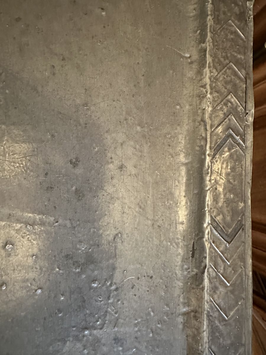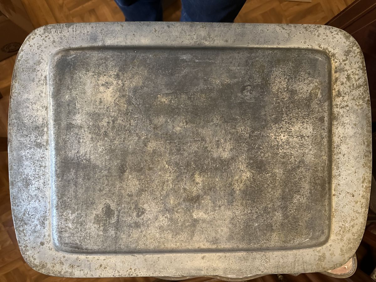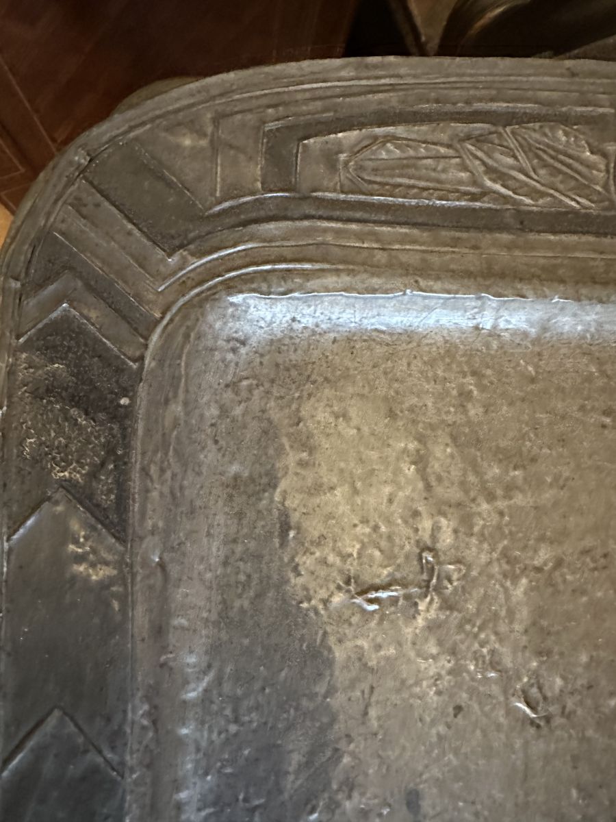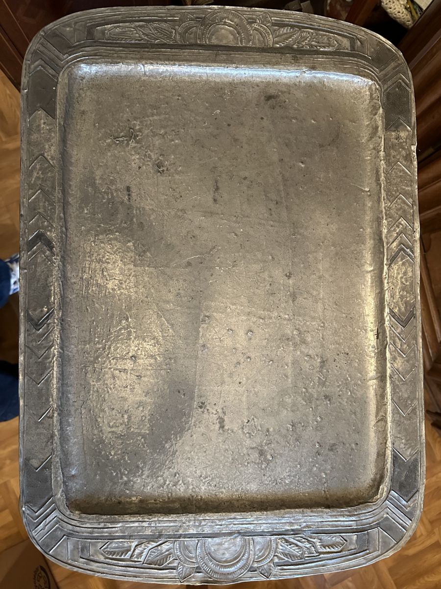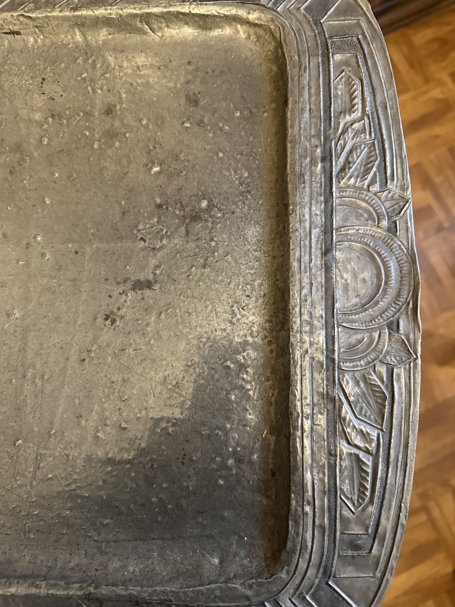 Grand plateau vintage en métal rehaussé de régule 60/45 cm