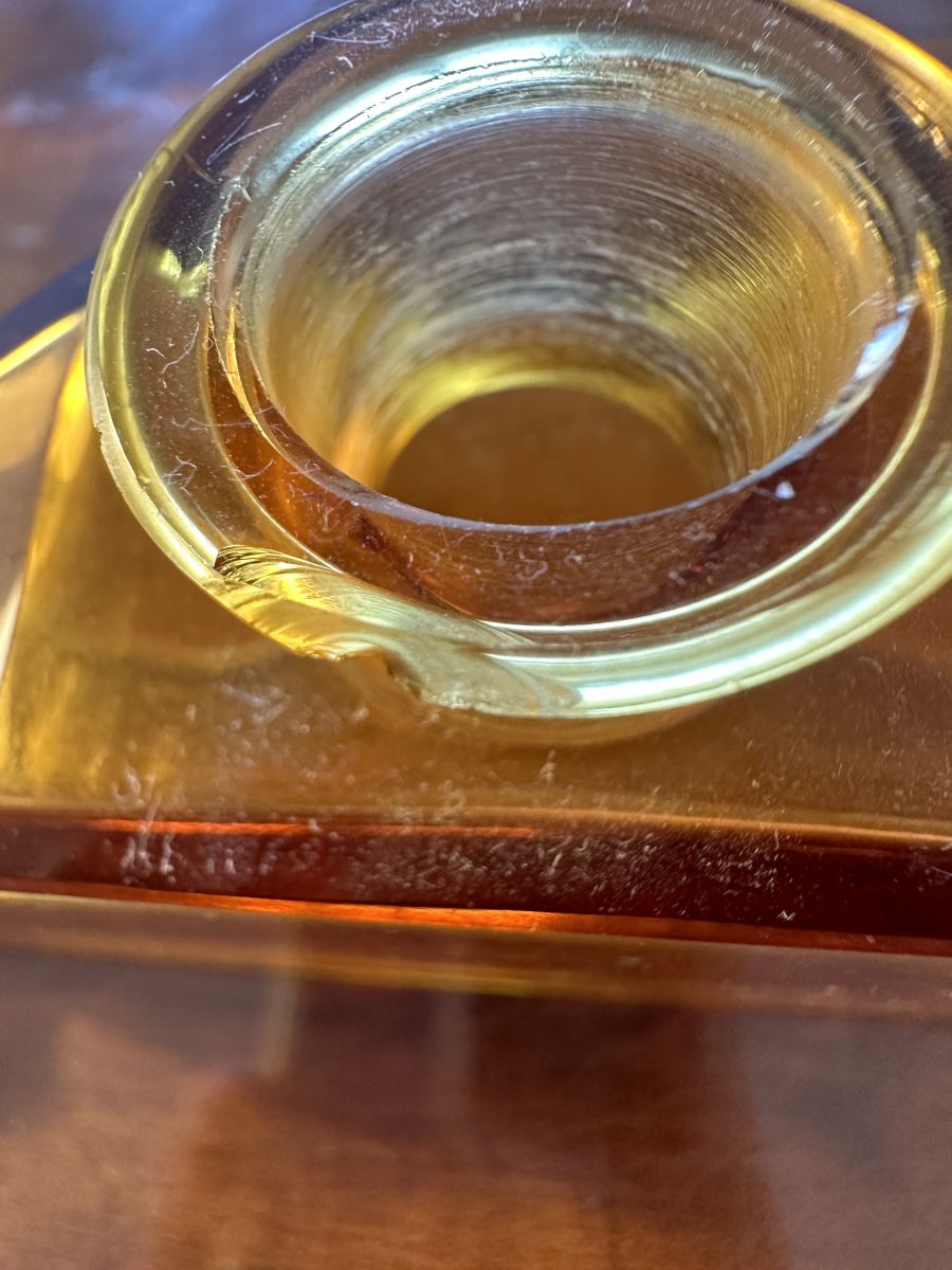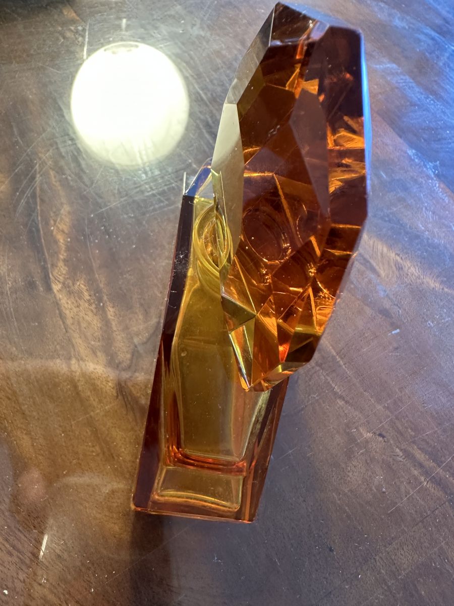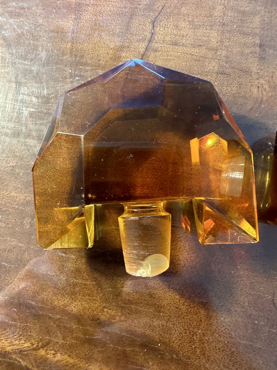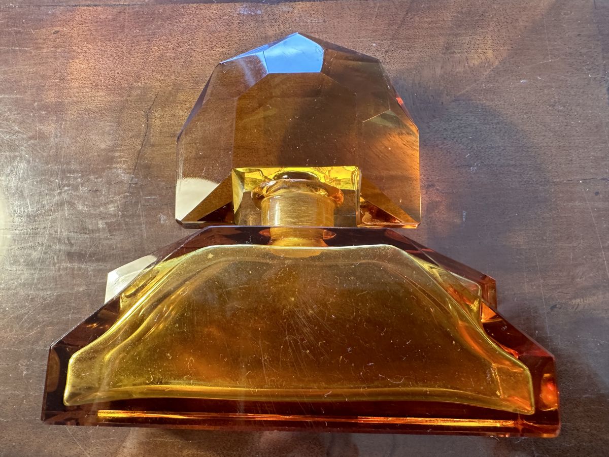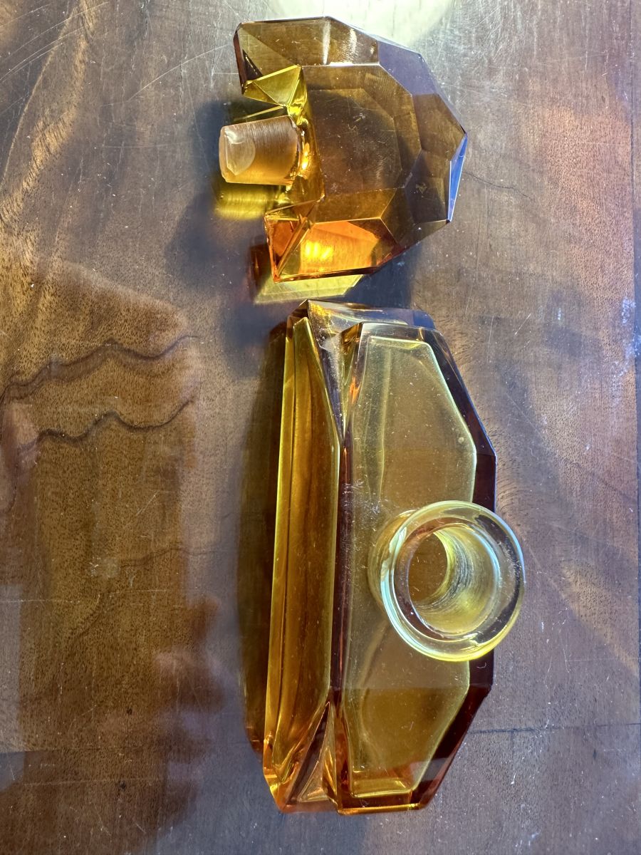 Flacon à Parfum Art-Deco en cristal de Bohème couleur Ambre.