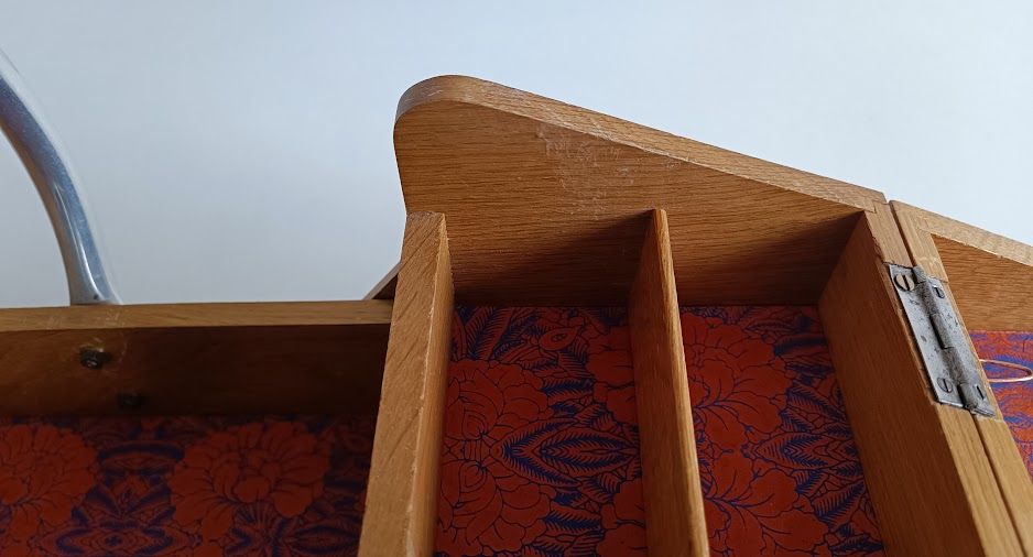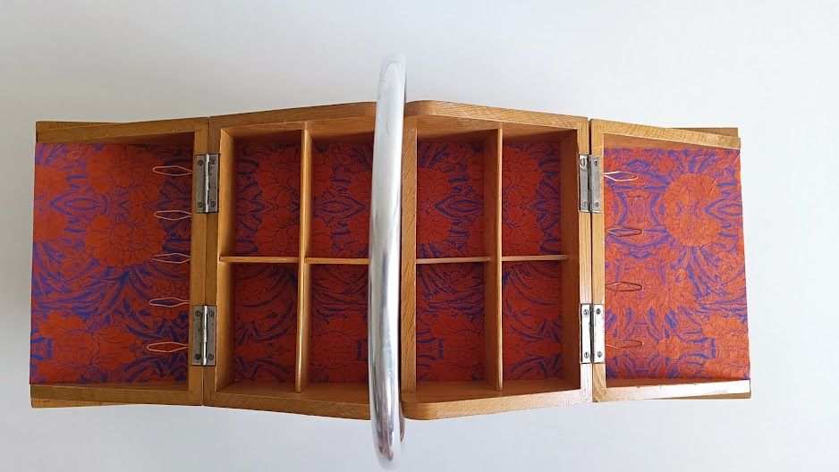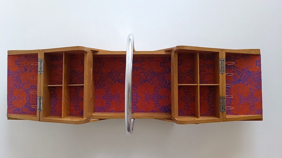 Boîte à couture des années 50/60 à la forme tout à fait atypique.