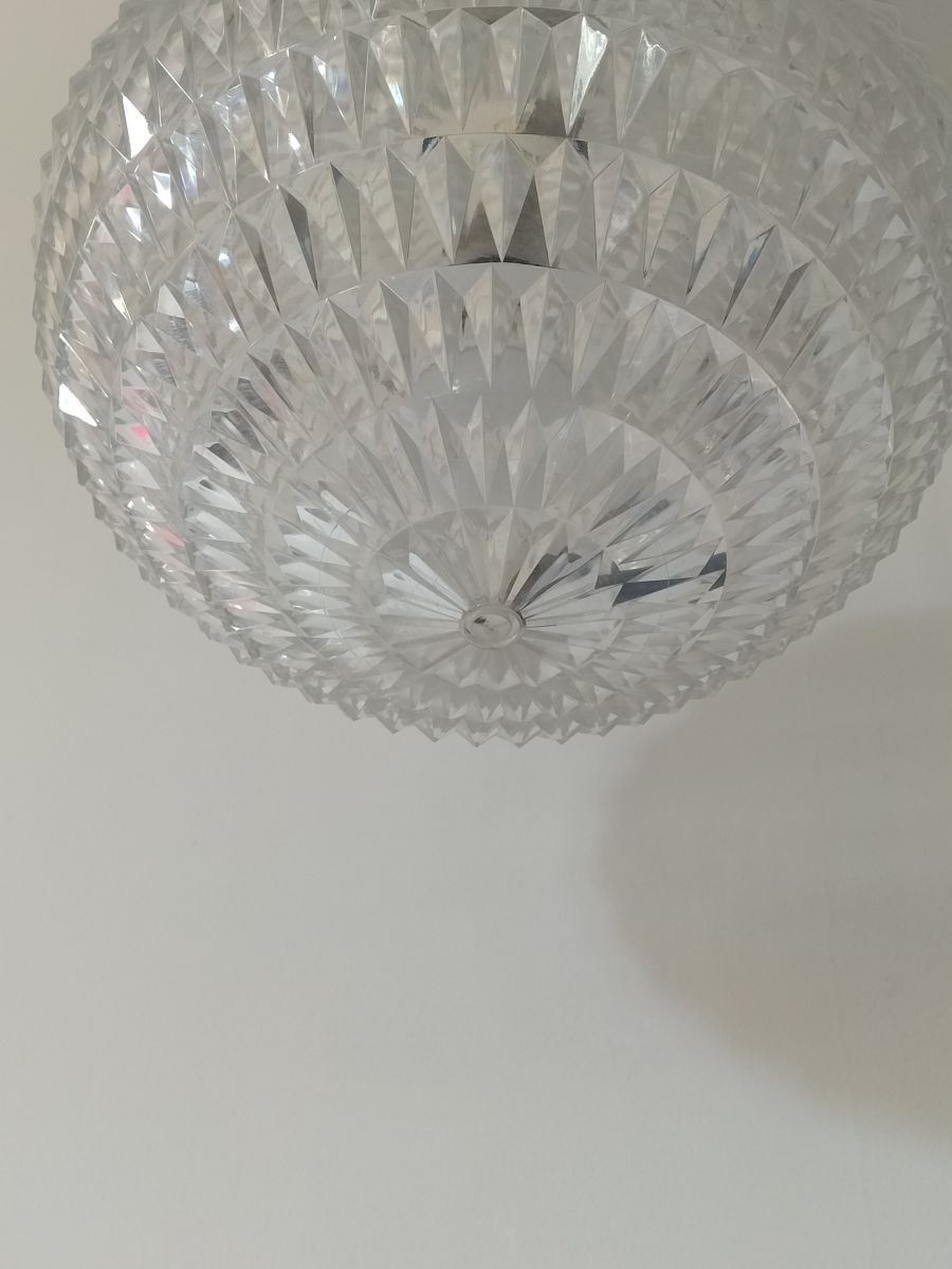 Jolie suspension lumineuse en PVC effet boule à facette.