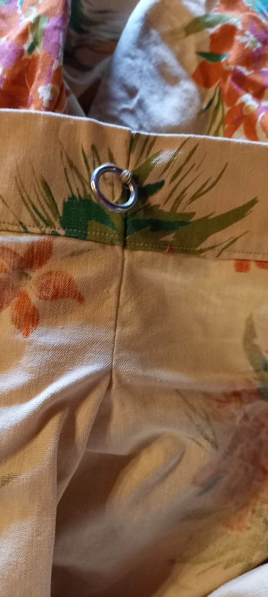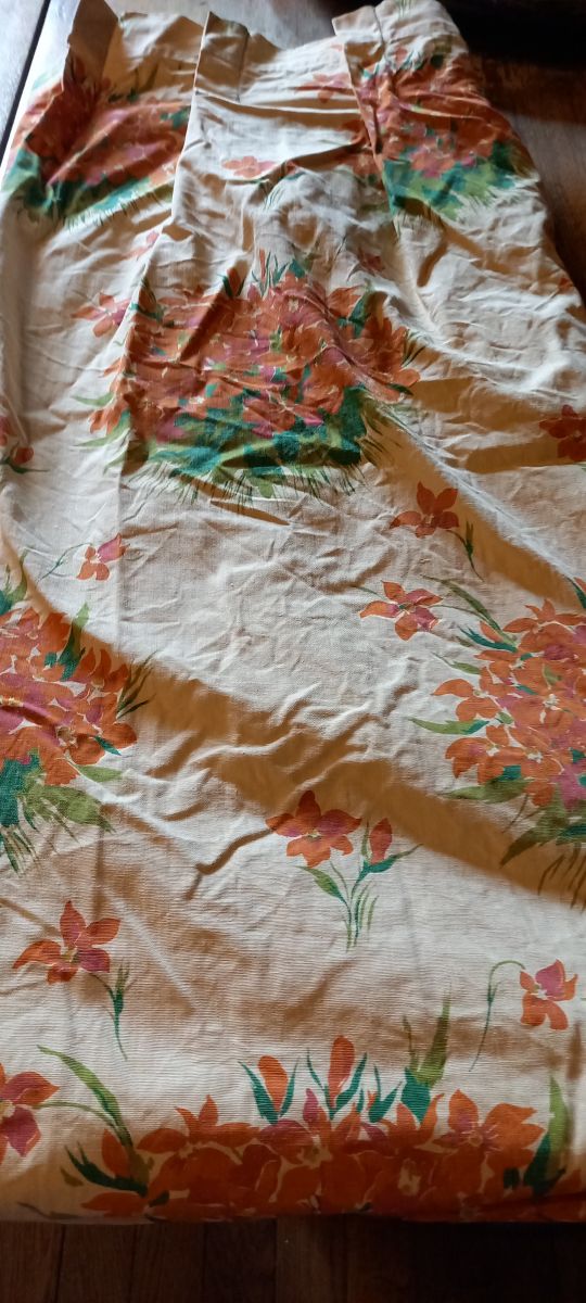 Rideau vintage 1955 en coton et lin couleurs rouge vert ocre