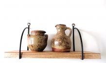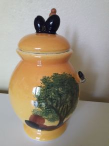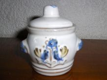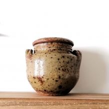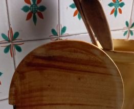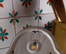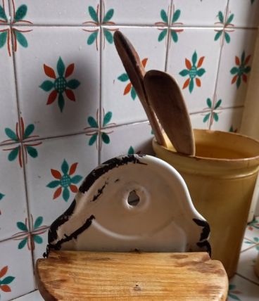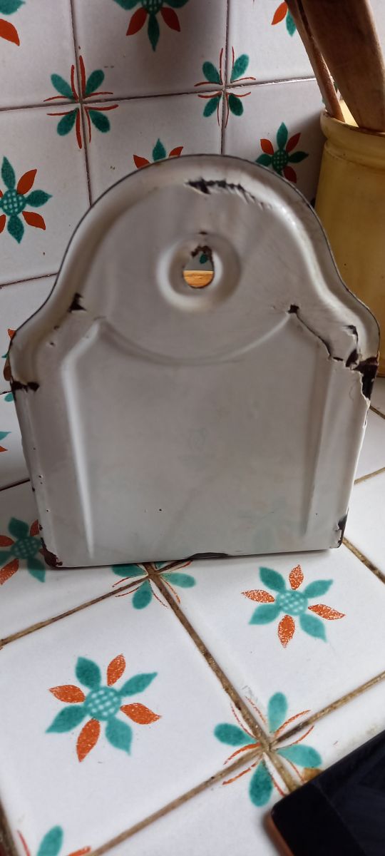 Boîte à sel émaillée couvercle en bois, se pose ou s'accroche