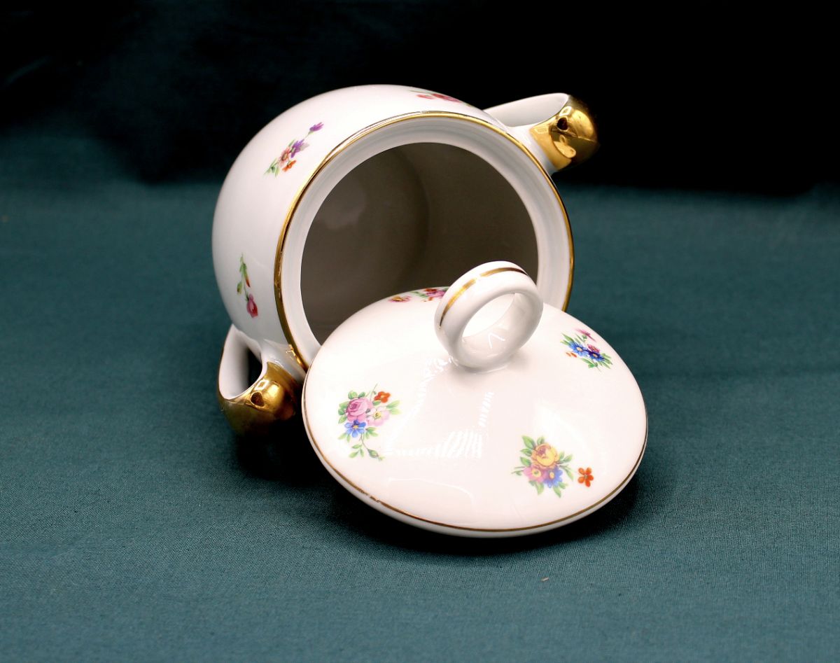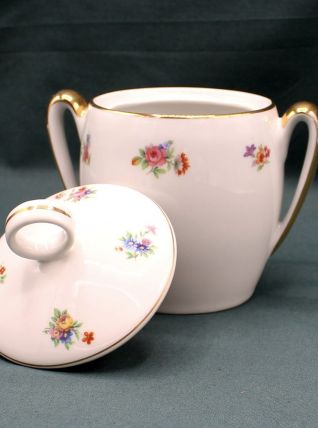 Sucrier ancien en Porcelaine - Décor floral - Vintage