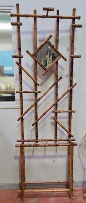Vestiaire porte parapluie d'applique en bambou orné d'un miroir carré au centre à quatre patères et un porte-chapeau