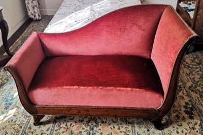 MERIDIENNE EN BATEAU ACAJOU ET VELOURS ROUGE