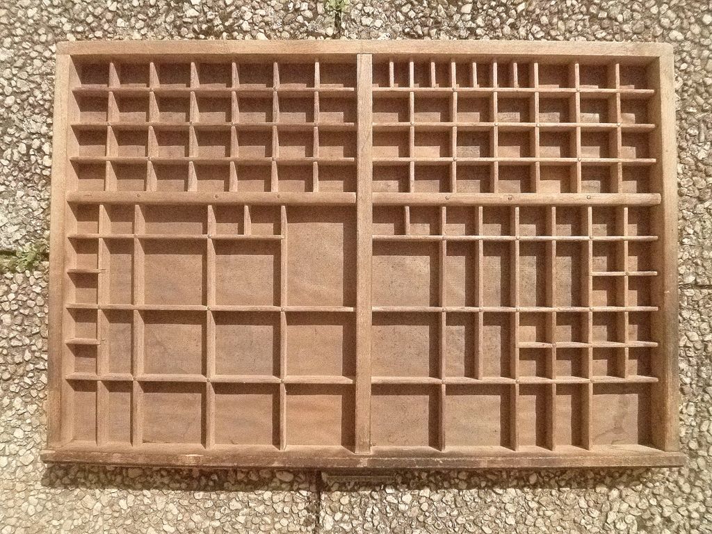ancien casier d'imprimerie en bois