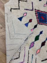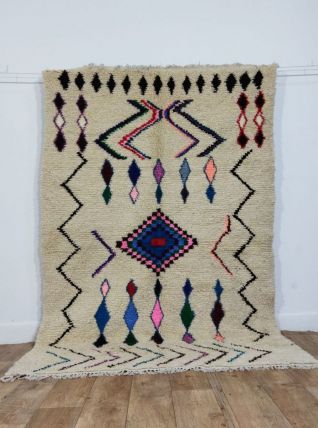 Tapis traditionnel marocain en laine, tissé à la main, qui perdurera pendant des années. Porteur d'art, d'histoire, de douceur et d'élégance, il s'intègrera harmonieusement à tous les styles de décoration, apportant une touche ethnique et chaleureuse à votre intérieur. Nous utilisons les meilleures techniques de tissage pour nos tapis, qui sont confectionnés à partir de 100% de laine. Nous entretenons une collaboration directe avec les artisans, car il nous tient à cœur de comprendre leur savoir-faire, d'apprendre la symbolique de leurs créations, puis de la partager avec vous à travers bohowool. Chaque tapis est unique et reflète la vie du tisserand qui l'a façonné. N'hésitez pas à nous indiquer si vous préférez une autre taille, une combinaison de couleurs ou un motif particulier. Si vous êtes intéressé par un tapis de dimensions différentes, nous pouvons le confectionner pour vous dans les plus brefs délais. Nos tapis sont expédiés depuis le maroc, et les frais de douane sont à la charge des clients. Nous avons besoin de 3 à 5 jours pour traiter les commandes, et les délais de livraison varient entre 4 et 9 jours. Faites l'acquisition d'un morceau d'art et de tradition marocains pour votre intérieur, tout en soutenant nos artisans talentueux." n'hésitez pas à me demander si vous avez besoin de plus d'informations ou de modifications supplémentaires !.