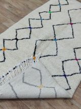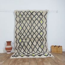 Tapis traditionnel marocain en laine, tissé à la main, qui perdurera pendant des années. Porteur d'art, d'histoire, de douceur et d'élégance, il s'intègrera harmonieusement à tous les styles de décoration, apportant une touche ethnique et chaleureuse à votre intérieur. Nous utilisons les meilleures techniques de tissage pour nos tapis, qui sont confectionnés à partir de 100% de laine. Nous entretenons une collaboration directe avec les artisans, car il nous tient à cœur de comprendre leur savoir-faire, d'apprendre la symbolique de leurs créations, puis de la partager avec vous à travers bohowool. Chaque tapis est unique et reflète la vie du tisserand qui l'a façonné. N'hésitez pas à nous indiquer si vous préférez une autre taille, une combinaison de couleurs ou un motif particulier. Si vous êtes intéressé par un tapis de dimensions différentes, nous pouvons le confectionner pour vous dans les plus brefs délais. Nos tapis sont expédiés depuis le maroc, et les frais de douane sont à la charge des clients. Nous avons besoin de 3 à 5 jours pour traiter les commandes, et les délais de livraison varient entre 4 et 9 jours. Faites l'acquisition d'un morceau d'art et de tradition marocains pour votre intérieur, tout en soutenant nos artisans talentueux." n'hésitez pas à me demander si vous avez besoin de plus d'informations ou de modifications supplémentaires !.