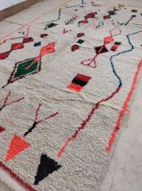 Tapis traditionnel marocain en laine, tissé à la main, qui perdurera pendant des années. Porteur d'art, d'histoire, de douceur et d'élégance, il s'intègrera harmonieusement à tous les styles de décoration, apportant une touche ethnique et chaleureuse à votre intérieur. Nous utilisons les meilleures techniques de tissage pour nos tapis, qui sont confectionnés à partir de 100% de laine. Nous entretenons une collaboration directe avec les artisans, car il nous tient à cœur de comprendre leur savoir-faire, d'apprendre la symbolique de leurs créations, puis de la partager avec vous à travers bohowool. Chaque tapis est unique et reflète la vie du tisserand qui l'a façonné. N'hésitez pas à nous indiquer si vous préférez une autre taille, une combinaison de couleurs ou un motif particulier. Si vous êtes intéressé par un tapis de dimensions différentes, nous pouvons le confectionner pour vous dans les plus brefs délais. Nos tapis sont expédiés depuis le maroc, et les frais de douane sont à la charge des clients. Nous avons besoin de 3 à 5 jours pour traiter les commandes, et les délais de livraison varient entre 4 et 9 jours. Faites l'acquisition d'un morceau d'art et de tradition marocains pour votre intérieur, tout en soutenant nos artisans talentueux." n'hésitez pas à me demander si vous avez besoin de plus d'informations ou de modifications supplémentaires !.