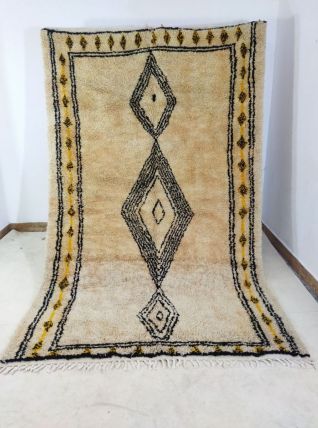 Tapis traditionnel marocain en laine, tissé à la main, qui perdurera pendant des années. Porteur d'art, d'histoire, de douceur et d'élégance, il s'intègrera harmonieusement à tous les styles de décoration, apportant une touche ethnique et chaleureuse à votre intérieur. Nous utilisons les meilleures techniques de tissage pour nos tapis, qui sont confectionnés à partir de 100% de laine. Nous entretenons une collaboration directe avec les artisans, car il nous tient à cœur de comprendre leur savoir-faire, d'apprendre la symbolique de leurs créations, puis de la partager avec vous à travers bohowool. Chaque tapis est unique et reflète la vie du tisserand qui l'a façonné. N'hésitez pas à nous indiquer si vous préférez une autre taille, une combinaison de couleurs ou un motif particulier. Si vous êtes intéressé par un tapis de dimensions différentes, nous pouvons le confectionner pour vous dans les plus brefs délais. Nos tapis sont expédiés depuis le maroc, et les frais de douane sont à la charge des clients. Nous avons besoin de 3 à 5 jours pour traiter les commandes, et les délais de livraison varient entre 4 et 9 jours. Faites l'acquisition d'un morceau d'art et de tradition marocains pour votre intérieur, tout en soutenant nos artisans talentueux." n'hésitez pas à me demander si vous avez besoin de plus d'informations ou de modifications supplémentaires !.