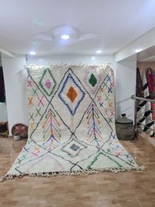 Tapis traditionnel marocain en laine, tissé à la main, qui perdurera pendant des années. Porteur d'art, d'histoire, de douceur et d'élégance, il s'intègrera harmonieusement à tous les styles de décoration, apportant une touche ethnique et chaleureuse à votre intérieur. Nous utilisons les meilleures techniques de tissage pour nos tapis, qui sont confectionnés à partir de 100% de laine. Nous entretenons une collaboration directe avec les artisans, car il nous tient à cœur de comprendre leur savoir-faire, d'apprendre la symbolique de leurs créations, puis de la partager avec vous à travers bohowool. Chaque tapis est unique et reflète la vie du tisserand qui l'a façonné. N'hésitez pas à nous indiquer si vous préférez une autre taille, une combinaison de couleurs ou un motif particulier. Si vous êtes intéressé par un tapis de dimensions différentes, nous pouvons le confectionner pour vous dans les plus brefs délais. Nos tapis sont expédiés depuis le maroc, et les frais de douane sont à la charge des clients. Nous avons besoin de 3 à 5 jours pour traiter les commandes, et les délais de livraison varient entre 4 et 9 jours. Faites l'acquisition d'un morceau d'art et de tradition marocains pour votre intérieur, tout en soutenant nos artisans talentueux." n'hésitez pas à me demander si vous avez besoin de plus d'informations ou de modifications supplémentaires !.