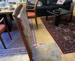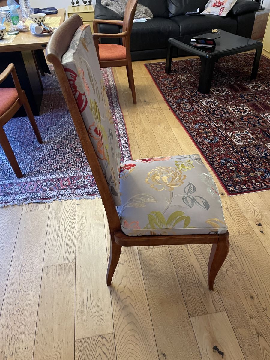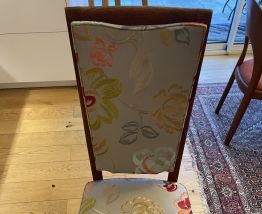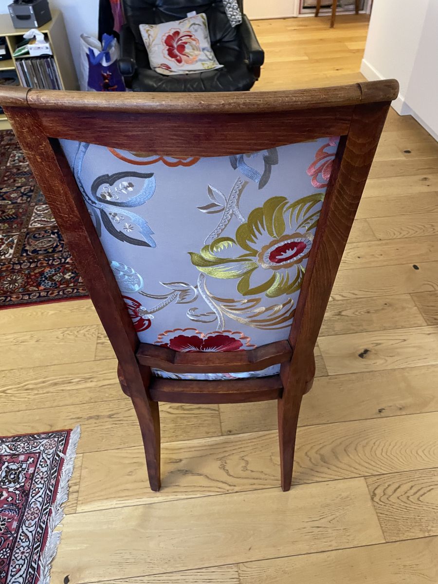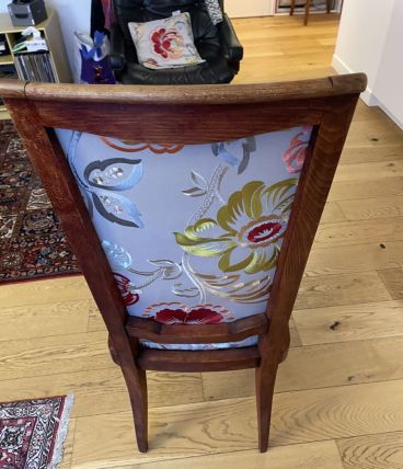 Un lot de 6 chaise en chène . l'assise et le dossier en tissu , celui ci est à refaire selon ses gouts et l'ensemble pourrait se confondre dans une admosphere "meuble scandinave"