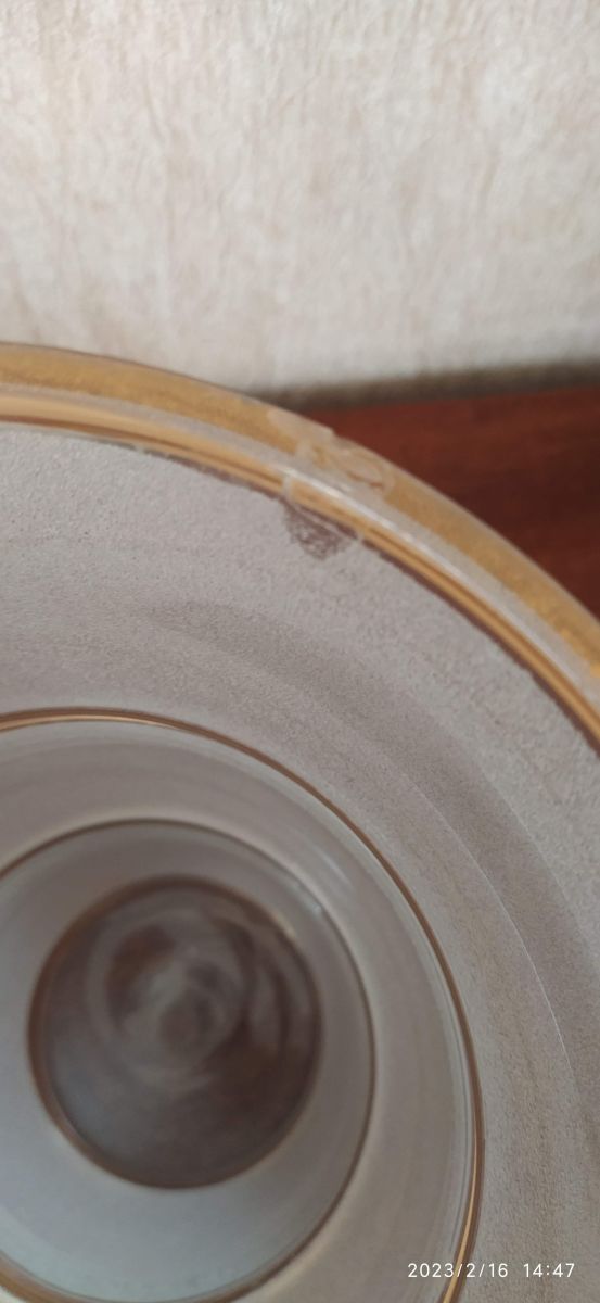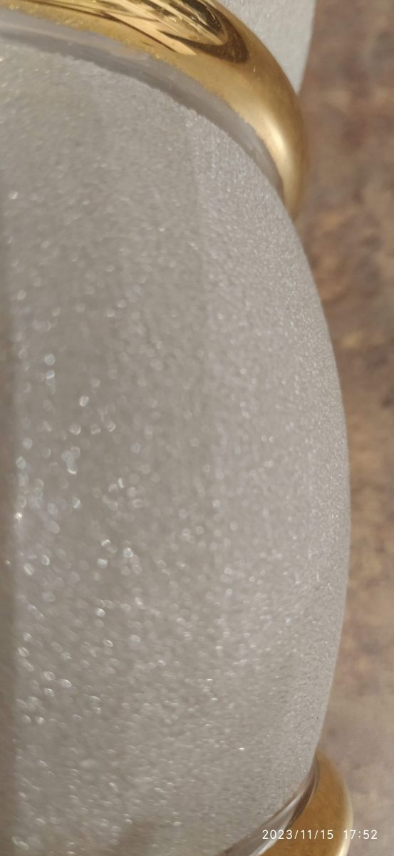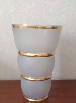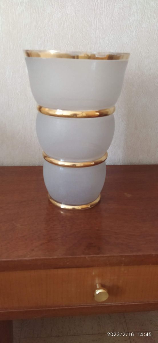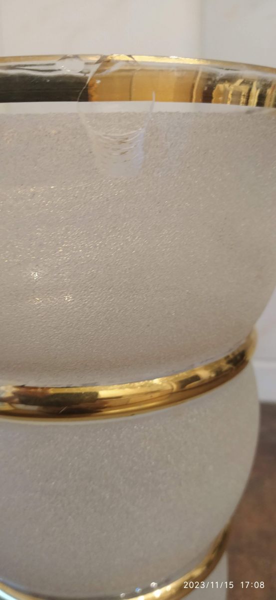 2 petits accidents sont visibles au haut du vase et la dorure du haut ne peut cacher les années d'usage.