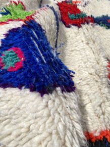 Plongez dans l'histoire fascinante des tribus berbères nomades grâce à nos tapis marocains exceptionnels. Chacun de nos tapis est bien plus qu'un simple objet de décoration; il est le reflet d'un riche héritage culturel. Les techniques de fabrication que nous utilisons ont été précieusement transmises de génération en génération, un véritable trésor de savoir-faire artisanal. Nos tapis berbères sont méticuleusement détaillés et tissés à la main par des femmes berbères du maroc, vivant au cœur des majestueuses montagnes de l'atlas. Ils utilisent des métiers à tisser traditionnels en bois pour créer ces œuvres d'art. Chaque tapis est un témoignage de leur dévouement à préserver leur culture et leur tradition. Nous comprenons que la taille précise est importante pour vous. mais si vous avez besoin de la taille exacte, n'hésitez pas à nous contacter pour plus de détails. Nous avons à cœur la qualité de nos tapis, c'est pourquoi nous sélectionnons avec soin une laine de haute qualité, naturellement teinte et suspendue pour sécher, garantissant ainsi la durabilité et la beauté de chaque pièce. Veuillez prévoir un délai de 3 à 5 jours pour le traitement de votre commande. Nos expéditions proviennent directement du maroc, veuillez noter que des frais de douane peuvent s'appliquer. Chaque tapis berbère que nous proposons est une fenêtre ouverte sur le passé, une invitation à célébrer l'authenticité et la beauté du maroc. Offrez-vous un morceau de cette histoire en commandant l'un de nos tapis uniques et créez un espace qui raconte une histoire riche et intemporelle.