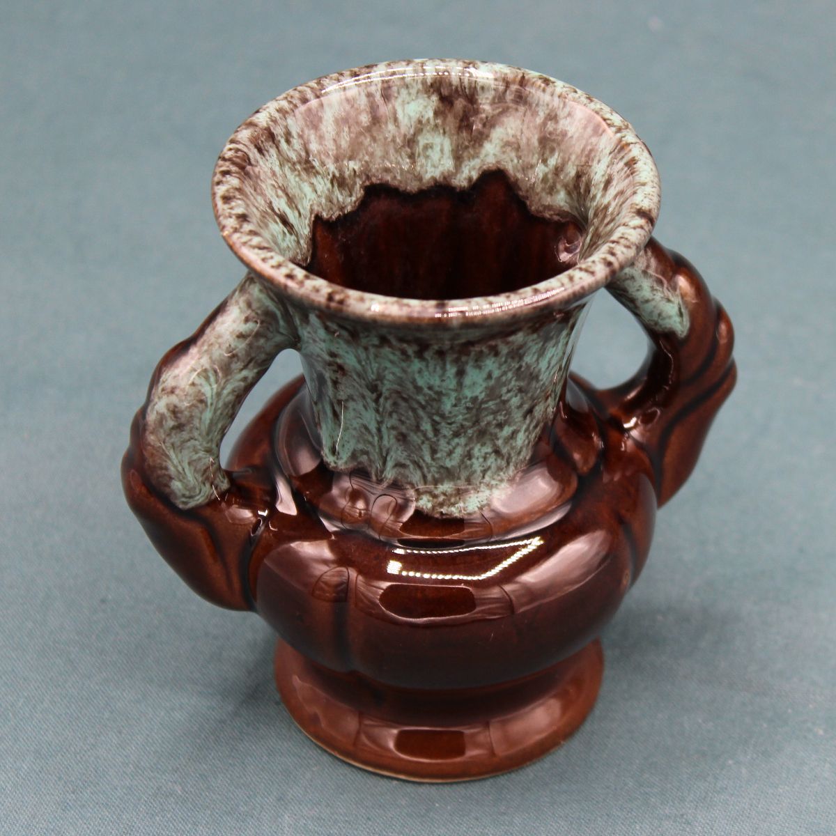 Petit vase de forme Amphore à deux anses latérales en céramique émaillée.
