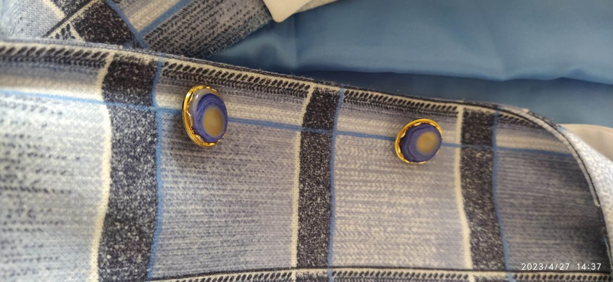 Elle peut être portée avec son col blanc qui s'enlève facilement pour le lavage (boutons pression).