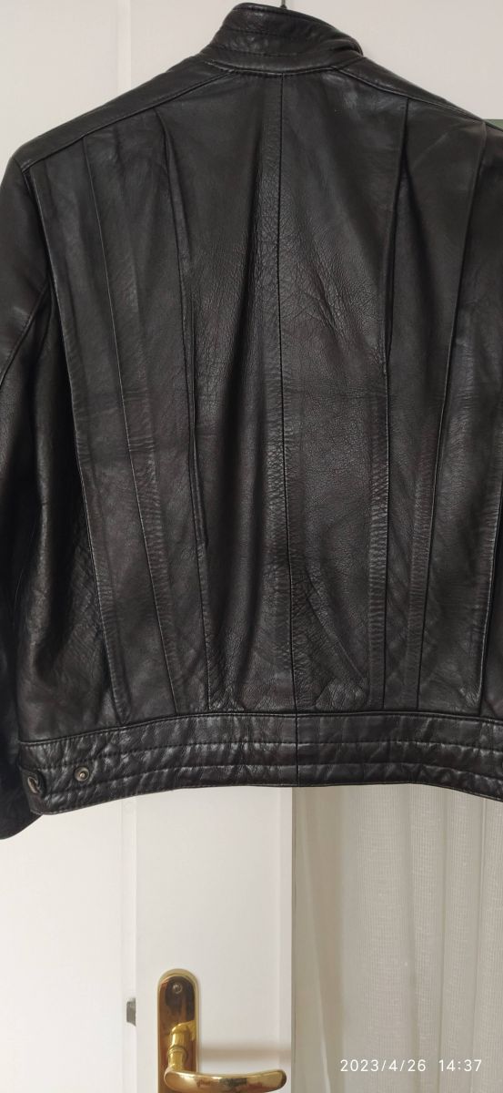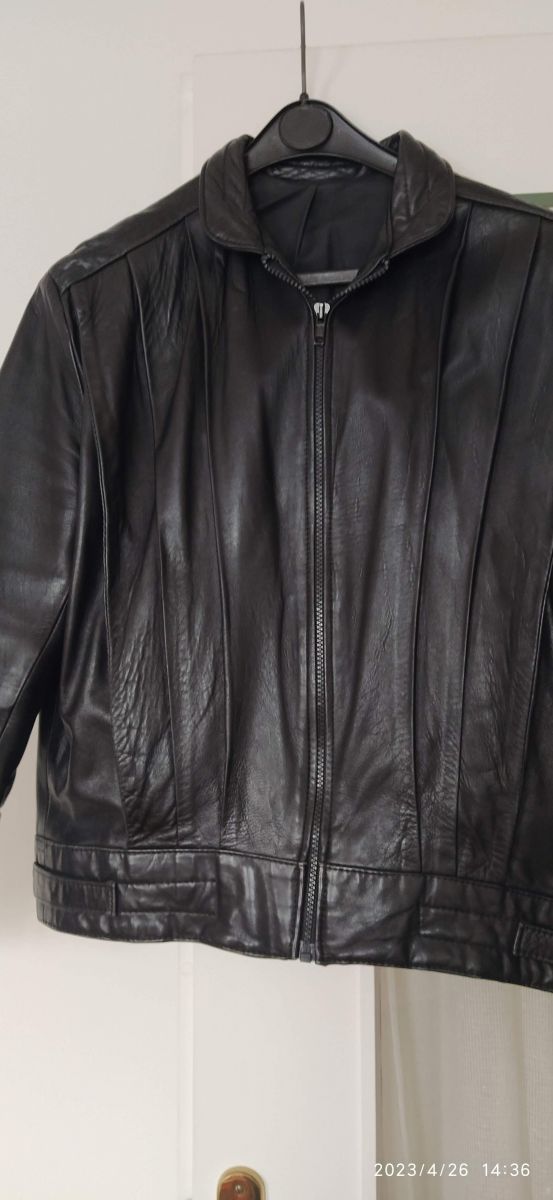 Blouson noir en cuir véritable des années 70.
