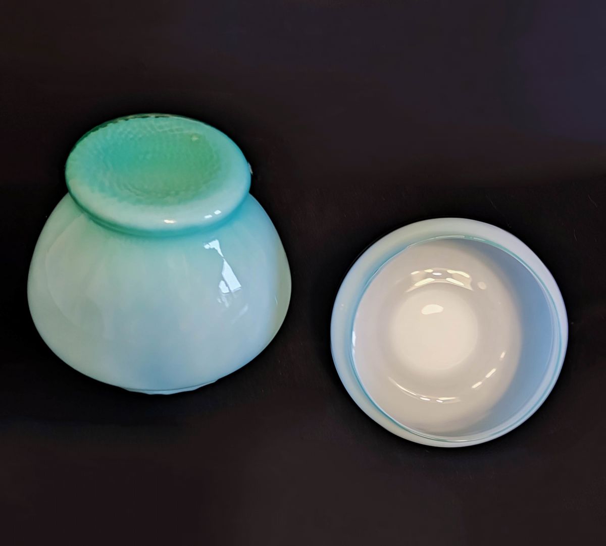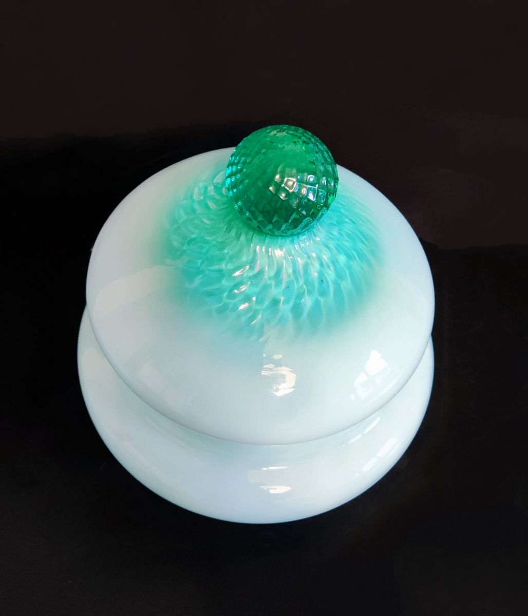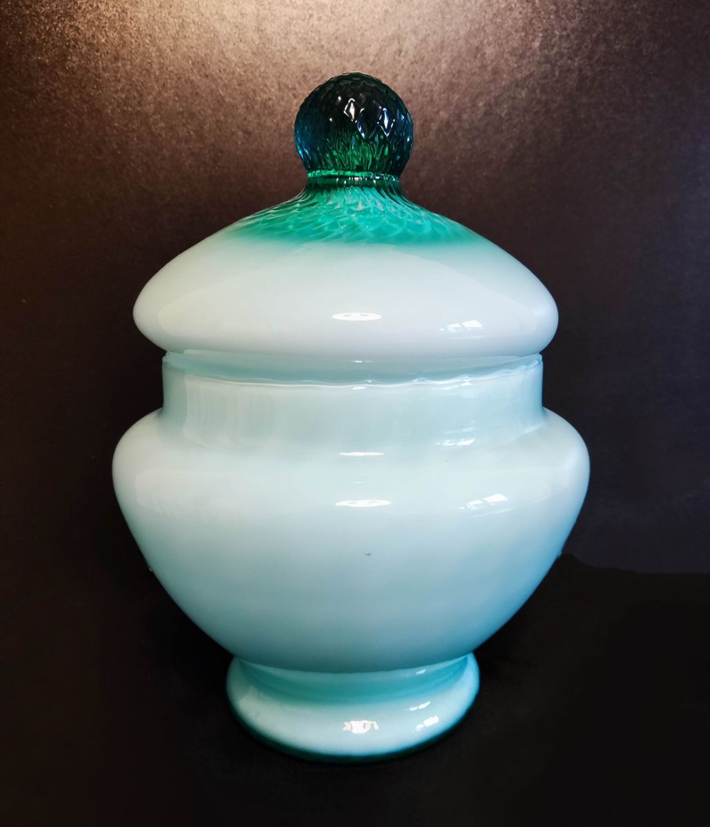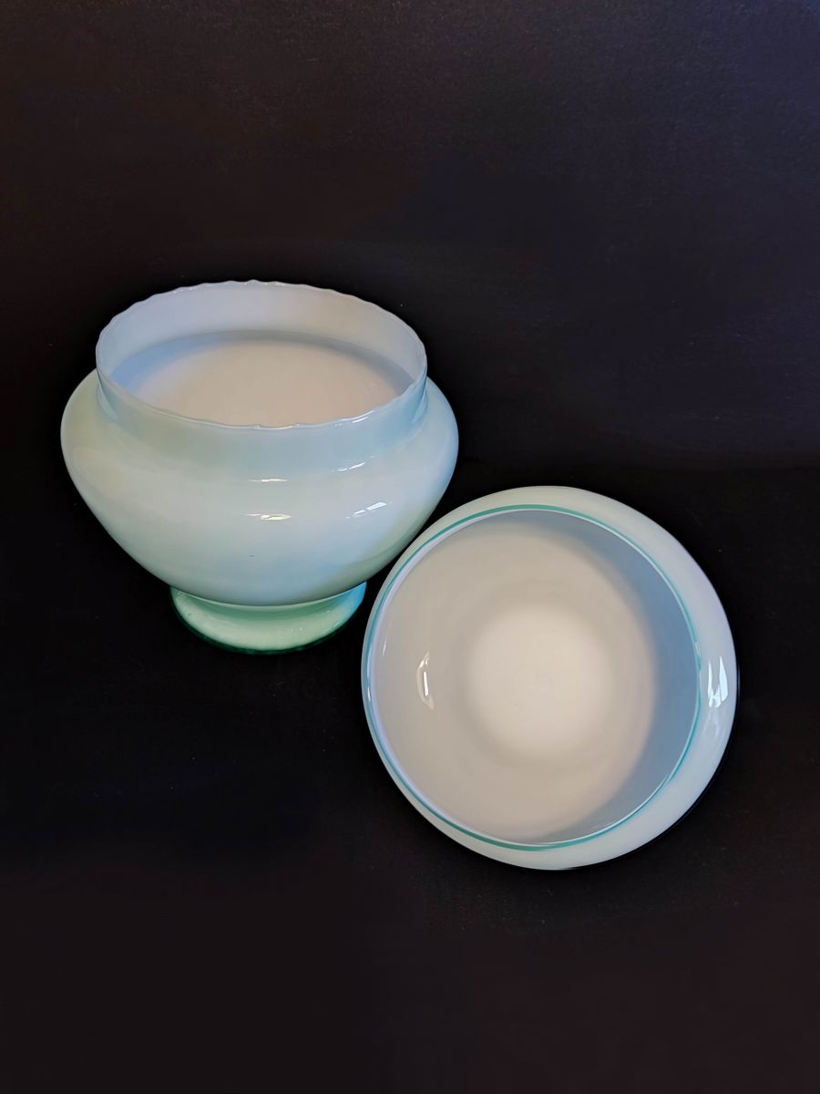 H sans couvercle = 14 cm diamètre pied = 10 cm