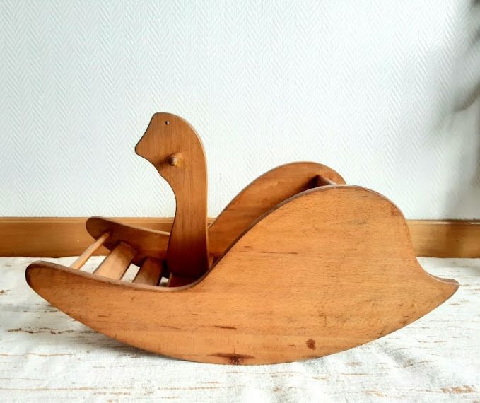 Petit cheval à bascule en pin, travail vintage scandinave des années 1960