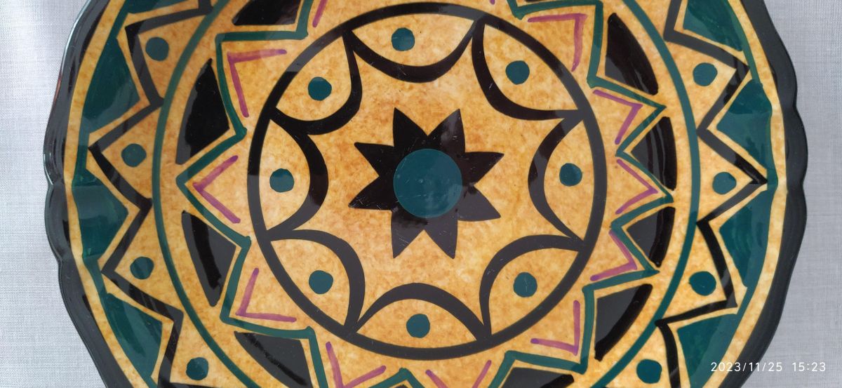 Explosion des couleurs, motifs géométriques avec arabesques, inspiration celte, la faïence de Saint Jean de Bretagne ne passe pas inaperçue.