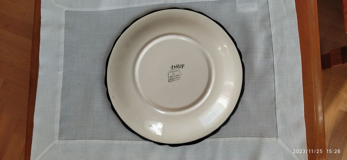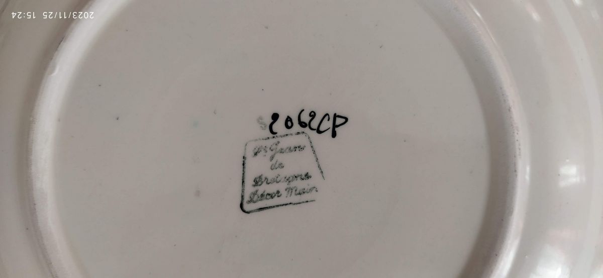Cette grande assiette décorative provient de la célèbre faïencerie Saint Jean de Bretagne.
