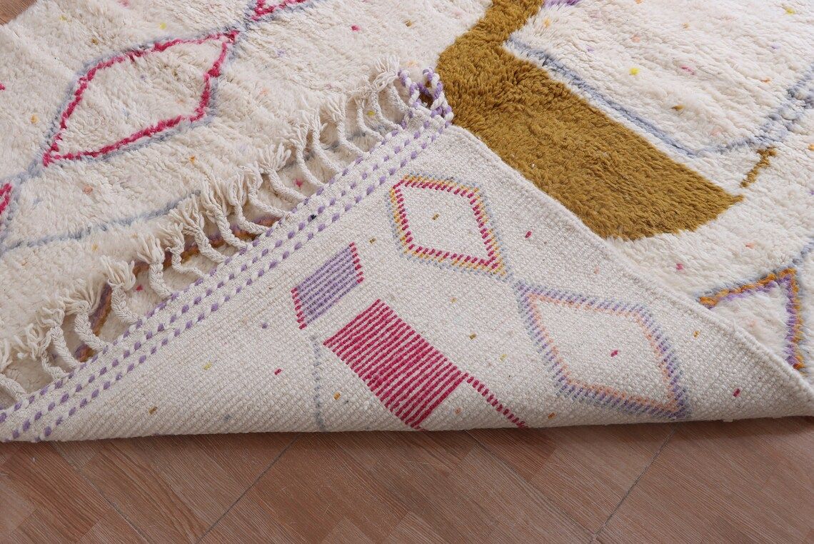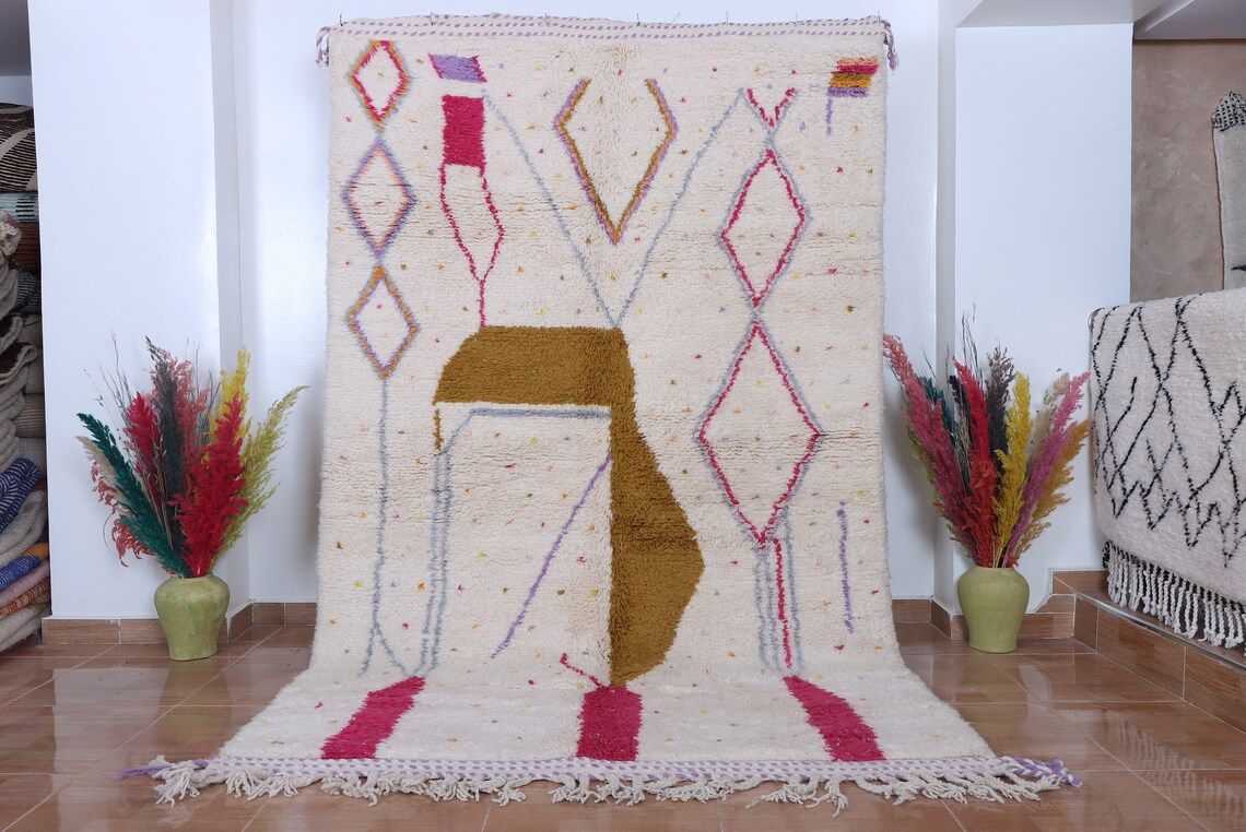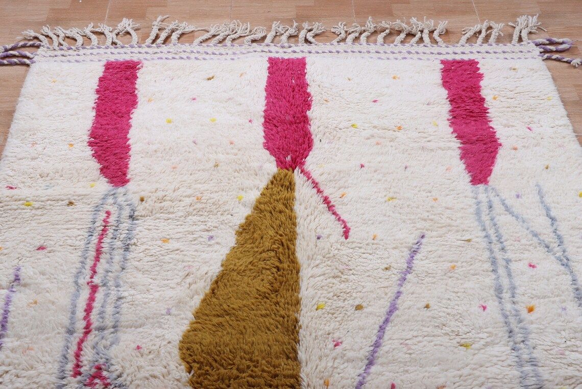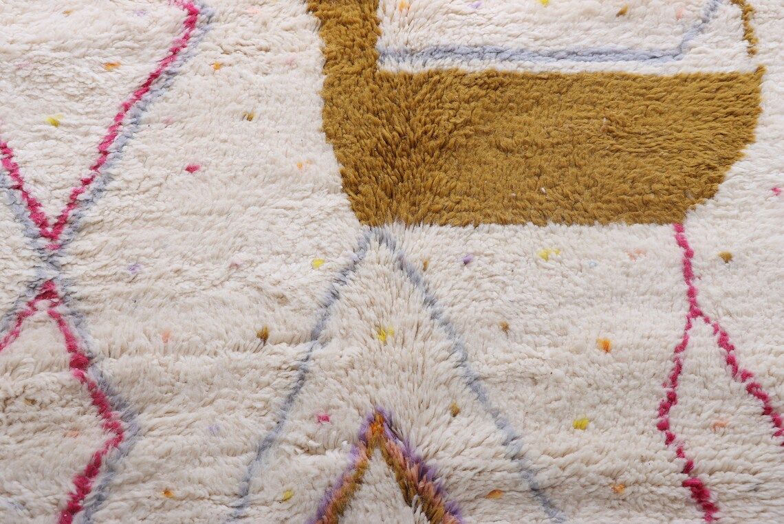 Ce superbe tapis berbère marocain rose, tissé à la main, marie tradition et modernité. Chaque carreau raconte une histoire, capturant l'héritage riche de la région. Polyvalent et élégant, ce tapis est bien plus qu'un simple accessoire de décoration ; c'est une expression vivante de l'art et de la culture marocaine. Invite l'histoire et la beauté chez toi avec ce tapis berbère exceptionnel.