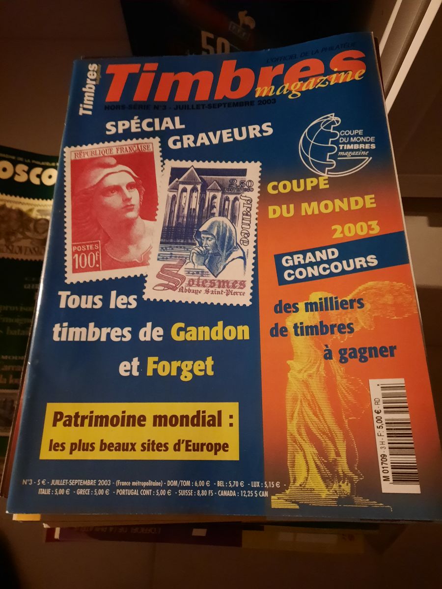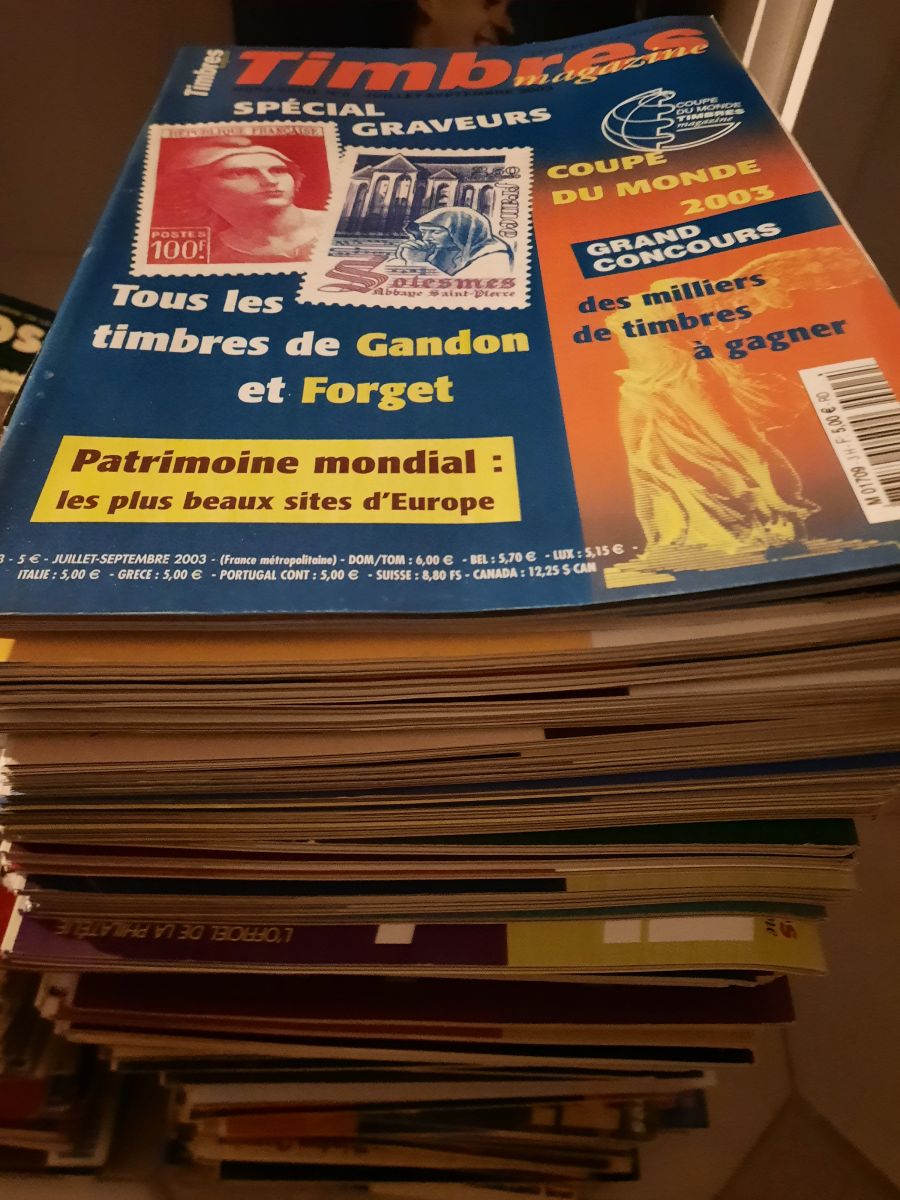Vends un lot de 102 numéros de "Timbre Magazine" du n°1 au n°102, aucun numéro manquant, en très bon état.