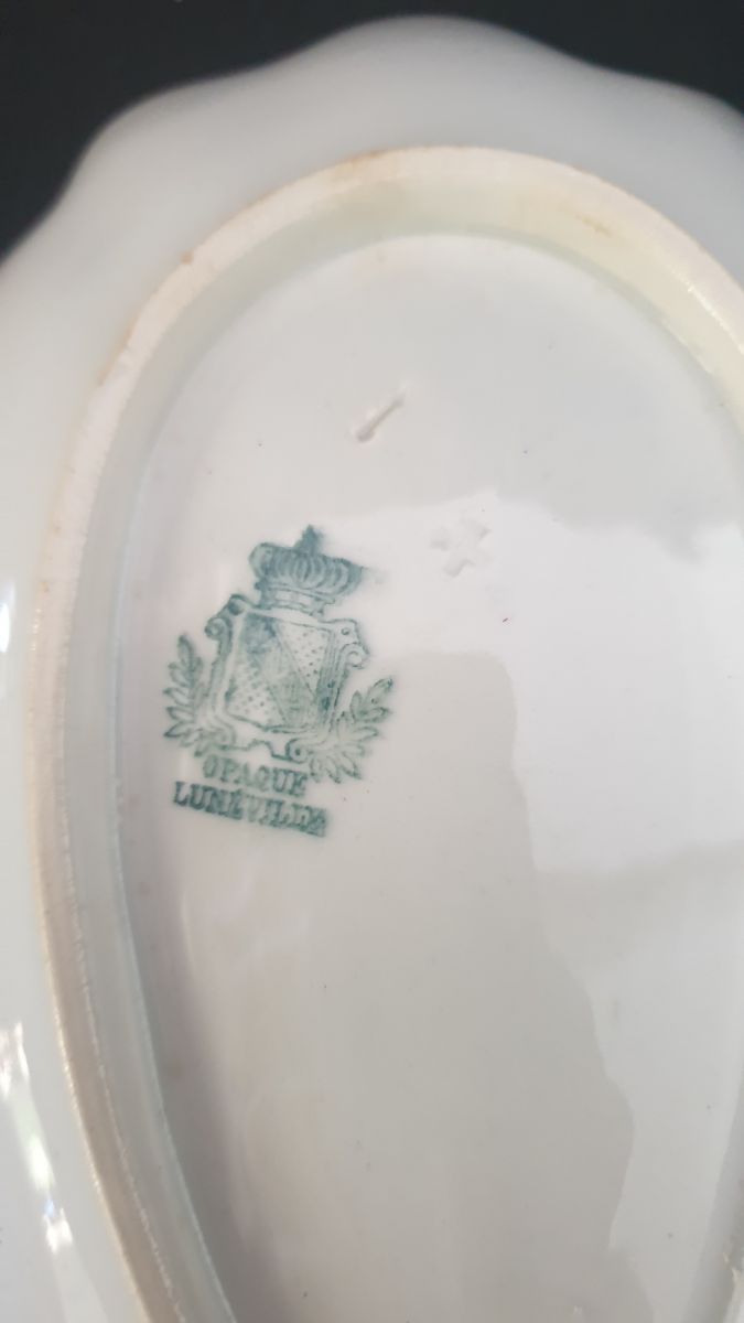 L'ensemble est en bon état quelques taches d'usage sur le plat plat, seul le ravier a un éclat à peine visible.