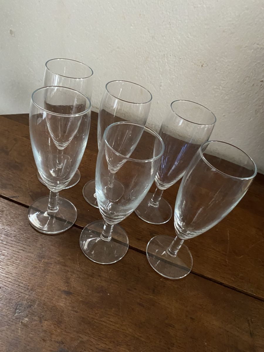 6 flûtes à champagne en très bon état.Elles sont sobres, simples pour une jolie table.