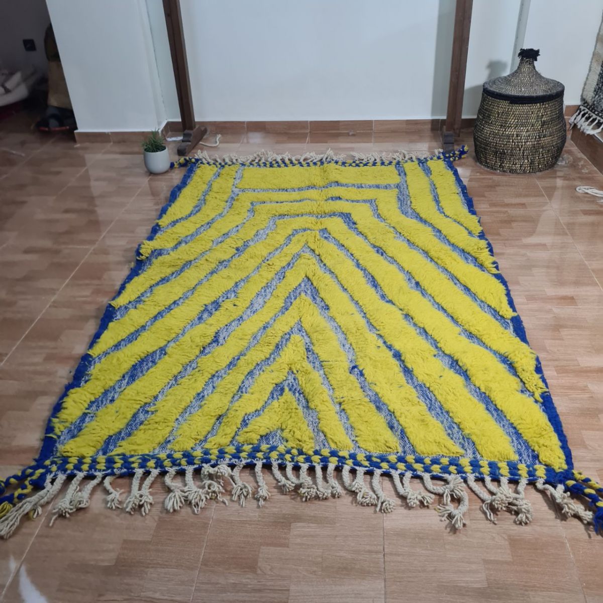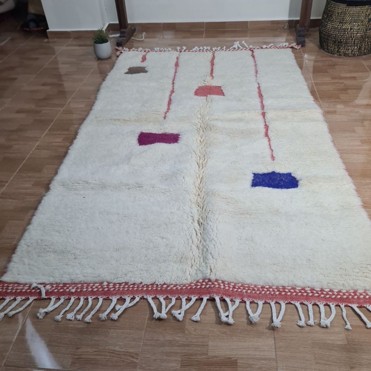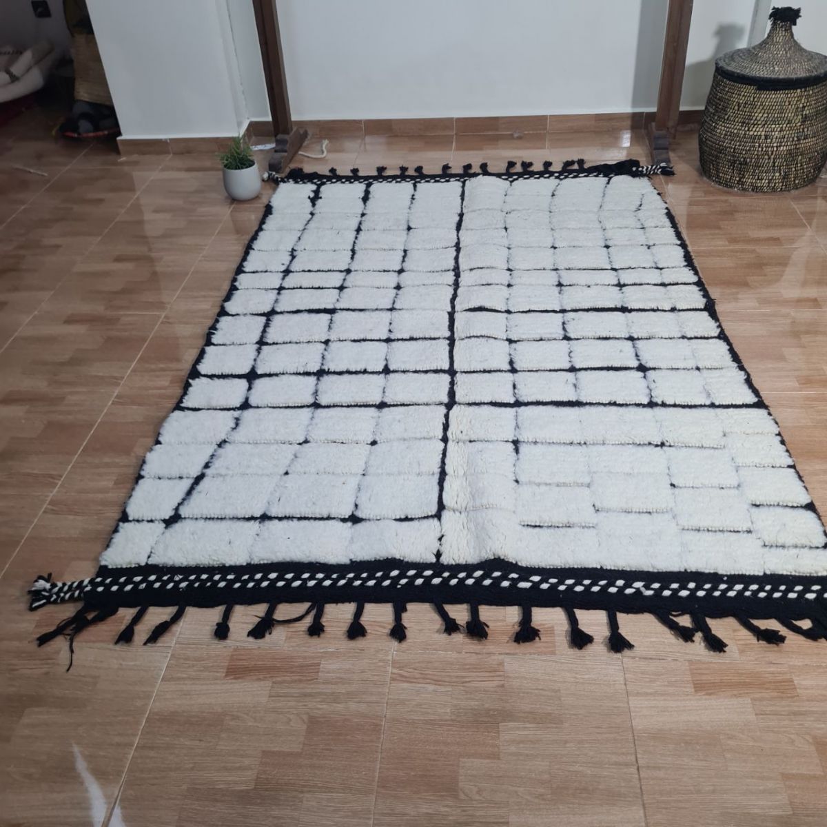 Tapis traditionnel marocain en laine, tissé à la main, qui perdurera pendant des années. Porteur d'art, d'histoire, de douceur et d'élégance, il s'intègrera harmonieusement à tous les styles de décoration, apportant une touche ethnique et chaleureuse à votre intérieur. Nous utilisons les meilleures techniques de tissage pour nos tapis, qui sont confectionnés à partir de 100% de laine. Nous entretenons une collaboration directe avec les artisans, car il nous tient à cœur de comprendre leur savoir-faire, d'apprendre la symbolique de leurs créations, puis de la partager avec vous à travers bohowool. Chaque tapis est unique et reflète la vie du tisserand qui l'a façonné. N'hésitez pas à nous indiquer si vous préférez une autre taille, une combinaison de couleurs ou un motif particulier. Si vous êtes intéressé par un tapis de dimensions différentes, nous pouvons le confectionner pour vous dans les plus brefs délais. Nos tapis sont expédiés depuis le maroc, et les frais de douane sont à la charge des clients. Nous avons besoin de 3 à 5 jours pour traiter les commandes, et les délais de livraison varient entre 4 et 9 jours. Faites l'acquisition d'un morceau d'art et de tradition marocains pour votre intérieur, tout en soutenant nos artisans talentueux." n'hésitez pas à me demander si vous avez besoin de plus d'informations ou de modifications supplémentaires !.