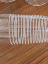 gravure creusée en spirale tout autour du corps. Ces flûtes sont hautes, bordure fine au buvant et pied fin partant d'un cylindre et se terminant par un carré (forme très originale).
