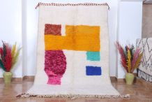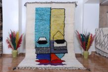 Un tapis marocain contemporain mettant en valeur la véritable vitrine amazighe authentique. Ce tapis a été finement tissé à la main avec les meilleurs matériaux organiques par les femmes de la tribu Taznakht. Il met en valeur une couleur ivoire interrompue par des motifs contemporains qui façonnent l'intégralité du tapis. Qu'il s'agisse d'un salon, d'une chambre ou d'un bureau, ce tapis fera sûrement une superbe déclaration pour votre espace.
