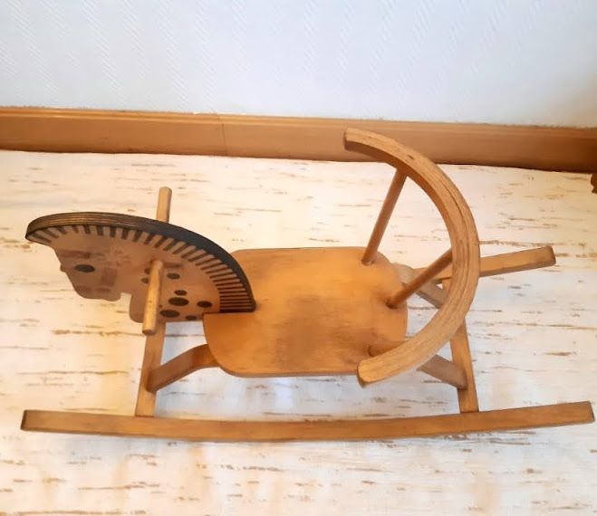 Cheval à bascule vintage en bois, vers 1950