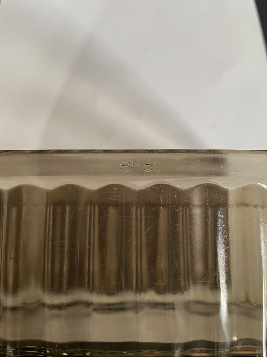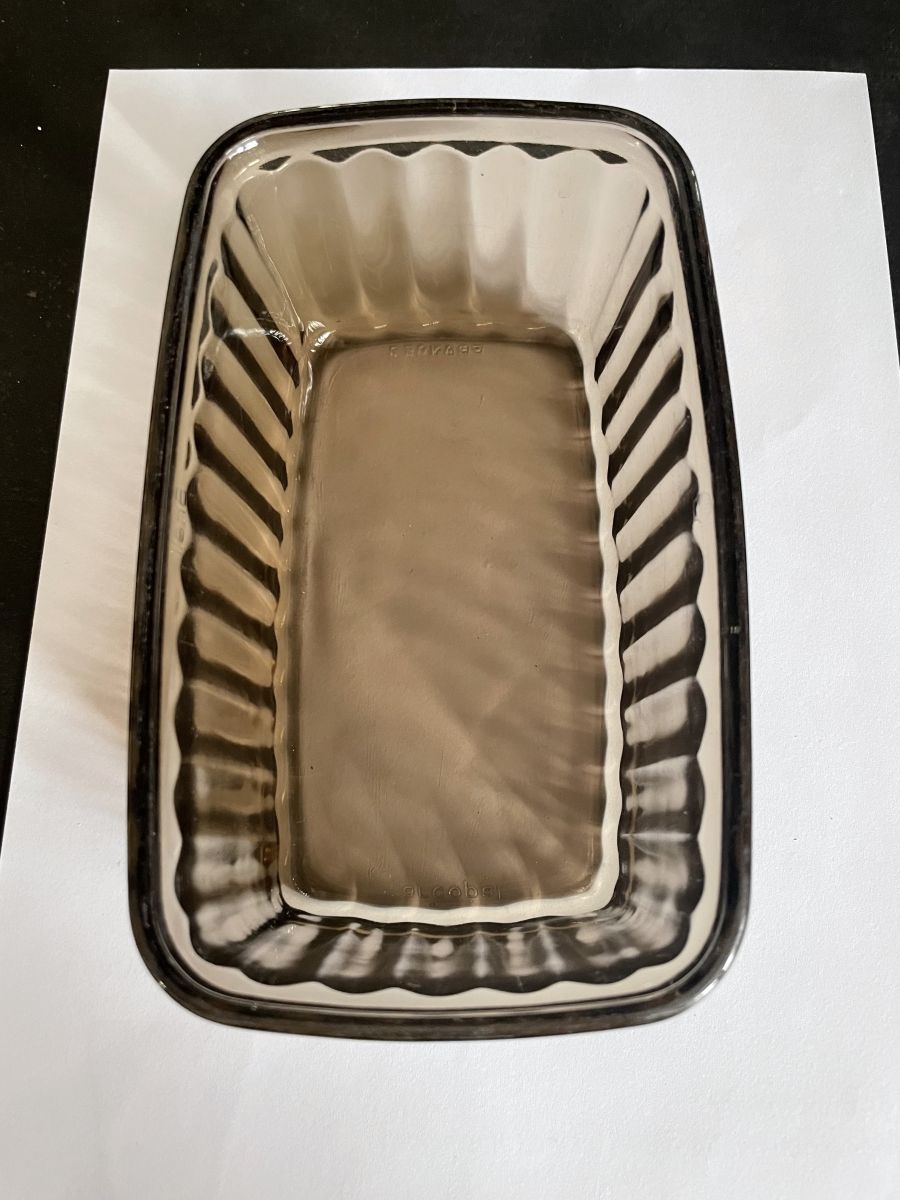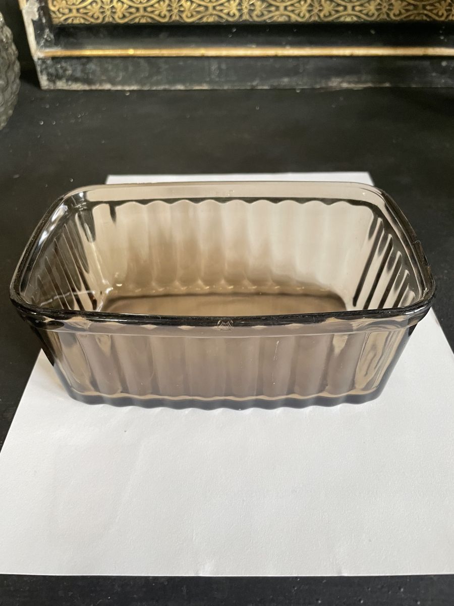 Grand ramequin rectangulaire en verre marron fumé Arcopal pour Shell.Bon état ; Rayures d'usage.