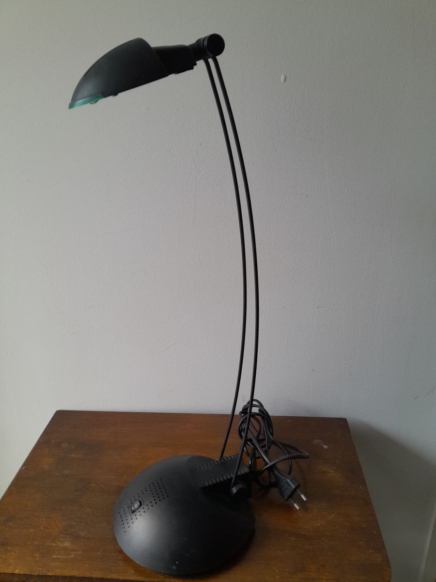 Lampe de bureau vintage pivotante avec interupteur sur le socle manque la petite glace au dessus de l'ampoule qui ne change rien à son bon fonctionnement. Dimensions : diam 19 cm hauteur 57 cm