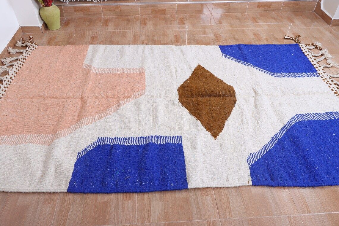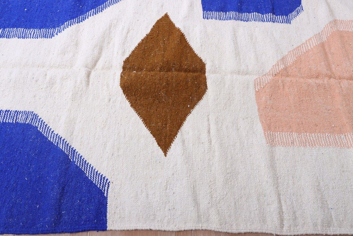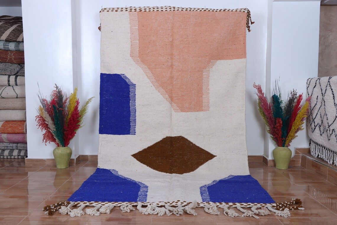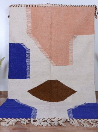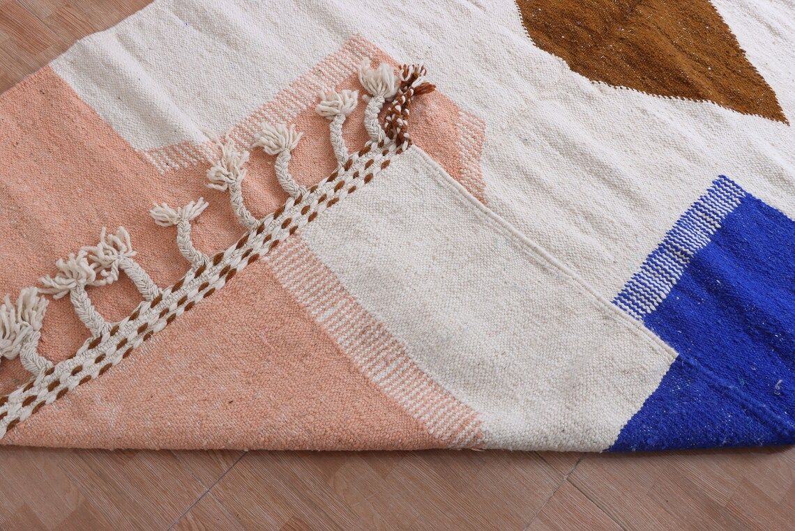Ce magnifique tapis est un tapis berbère tissé à plat fait main Zanafi. Tissé à la main dans les villages des montagnes de l'Atlas, ce tapis est le complément parfait à votre décoration intérieure.