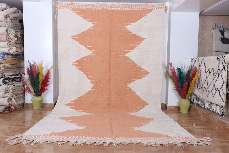 Ce magnifique tapis est un tapis berbère tissé à plat fait main Zanafi. Tissé à la main dans les villages des montagnes de l'Atlas, ce tapis est le complément parfait à votre décoration intérieure.