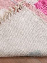 Ce superbe tapis berbère marocain rose, tissé à la main, marie tradition et modernité. Chaque carreau raconte une histoire, capturant l'héritage riche de la région. Polyvalent et élégant, ce tapis est bien plus qu'un simple accessoire de décoration ; c'est une expression vivante de l'art et de la culture marocaine. Invite l'histoire et la beauté chez toi avec ce tapis berbère exceptionnel.