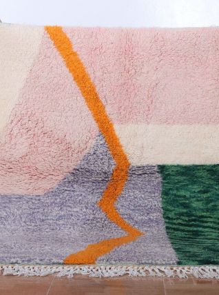 Ce superbe tapis berbère marocain rose, tissé à la main, marie tradition et modernité. Chaque carreau raconte une histoire, capturant l'héritage riche de la région. Polyvalent et élégant, ce tapis est bien plus qu'un simple accessoire de décoration ; c'est une expression vivante de l'art et de la culture marocaine. Invite l'histoire et la beauté chez toi avec ce tapis berbère exceptionnel.