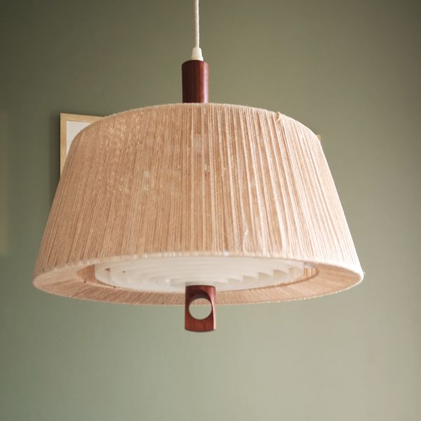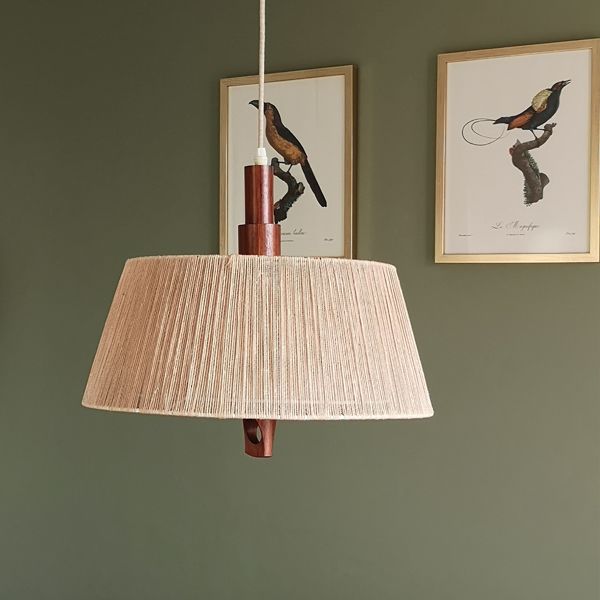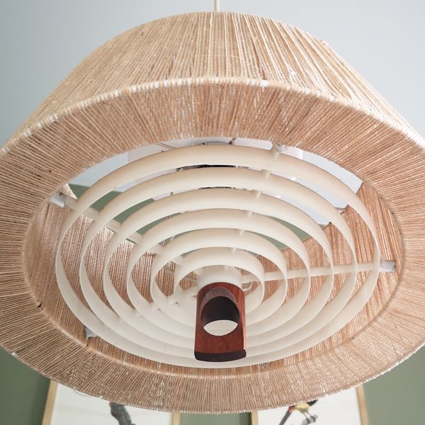 La suspension emblématique de la collection Temde de 1960, allie avec élégance le sisal et le teck, offrant une esthétique intemporelle. Son abat-jour circulaire, parfaitement préservé et d’origine, diffuse une lumière douce et chaleureuse, créant une atmosphère accueillante. Le réflecteur, également en excellent état, complète l’ensemble en assurant une répartition uniforme de la lumière. Son câble en tissu, ingénieusement conçu, permet un ajustement de la hauteur avec facilité, ajoutant une touche fonctionnelle à son design rétro. Cette suspension incarne l’artisanat exceptionnel de l’époque, préservant son charme vintage et son état impeccable pour éclairer avec style tout espace contemporain.