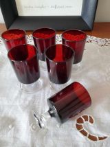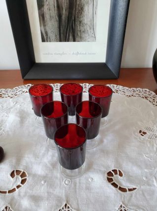 Ensemble de 6 verres à liqueur rouge Rubis, Suède LUMINARC.